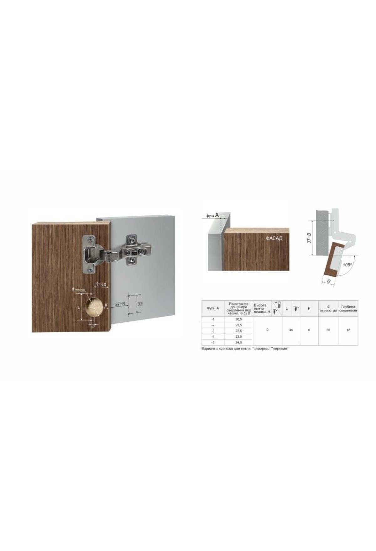 Н301 — одноходовая мебельная петля с амортизатором и углом установки 90°. Обеспечит плавное и мягкое открывание/закрывание фасада одним движением.