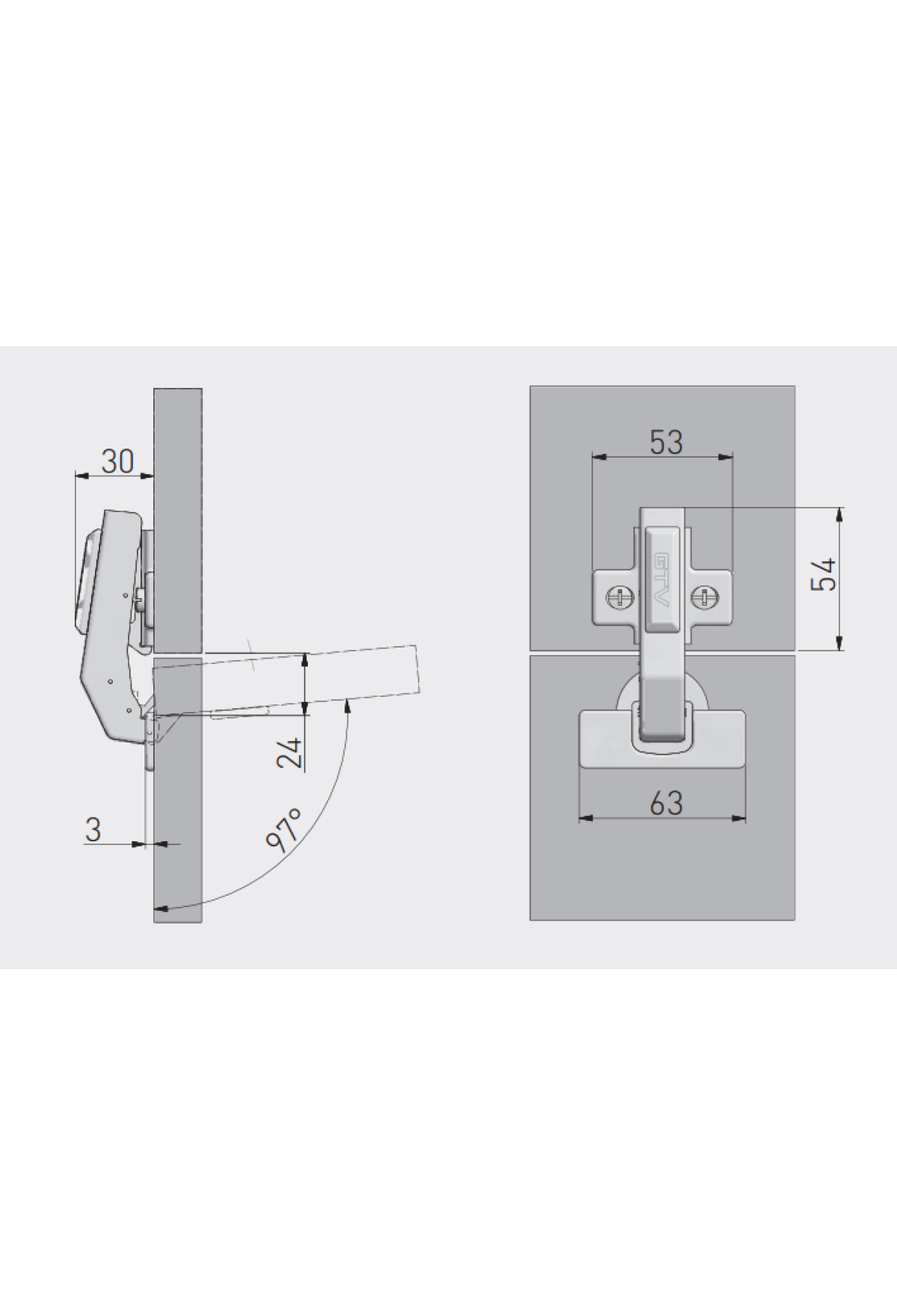 Технические характеристики петля GTV угловая 90гр, короткое плечо, доводчик, clip-on(100шт)/ZM-HCKT90-BE-S