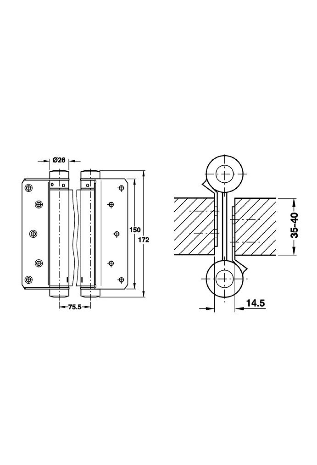 Петля для маятниковых дверей, открывание в две стороны, угол раскрытия: 180 градусов.