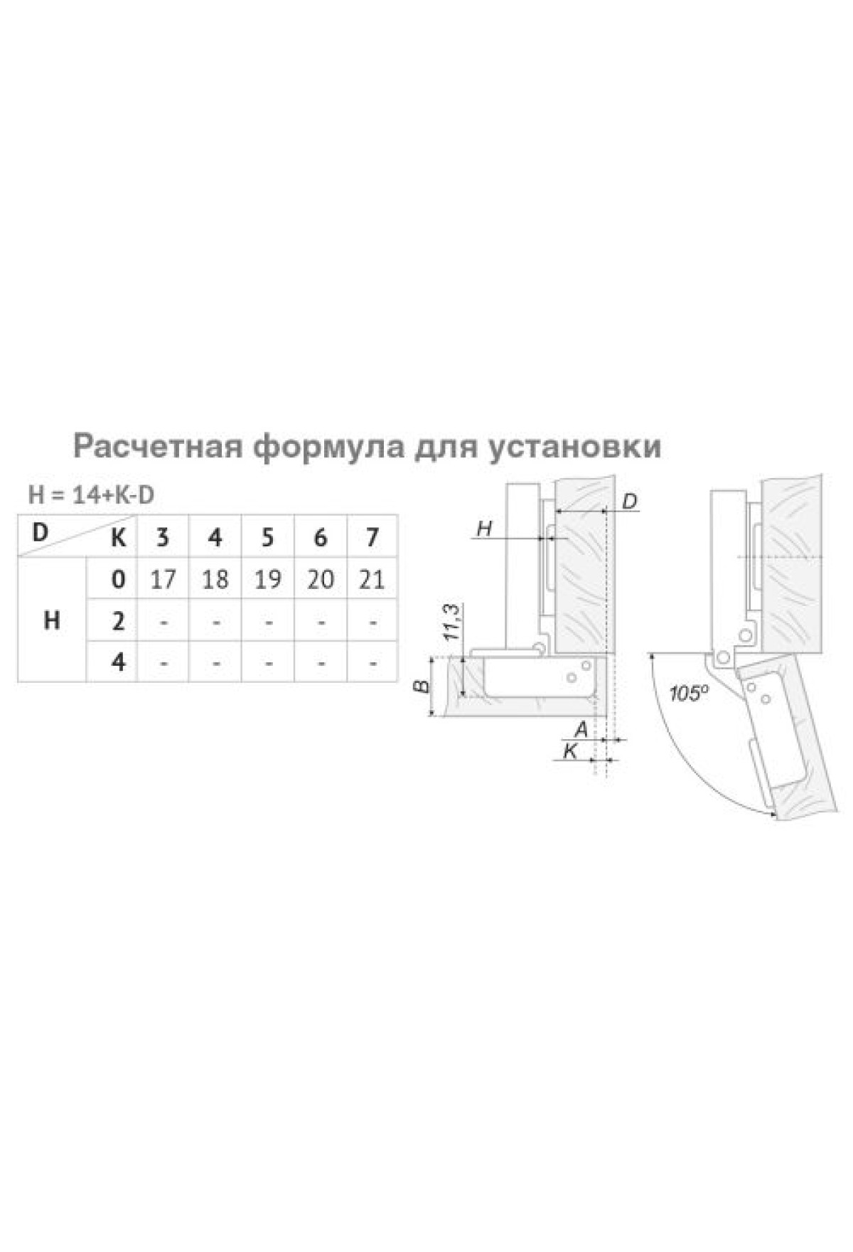 Технические характеристики Петля мебельная накладная NEO 105 градусов с доводчиком H306A02 Boyard