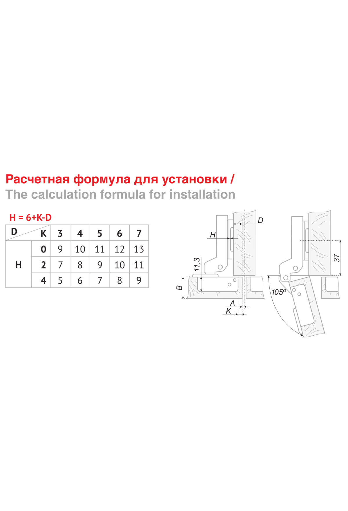 Технические характеристики Петля мебельная полунакладная 105 градусов H=0мм с доводчиком H301B02/0910 Boyard
