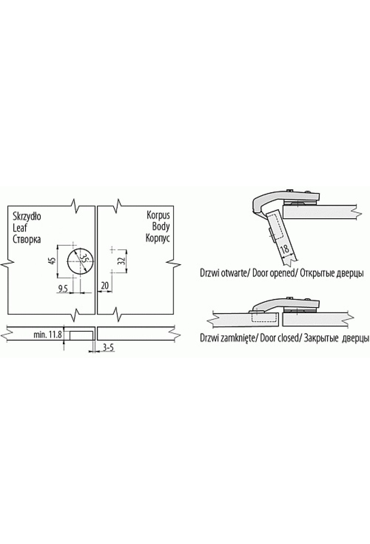 Петля для деревянных накладных фасадов толщиной 16-18 мм.