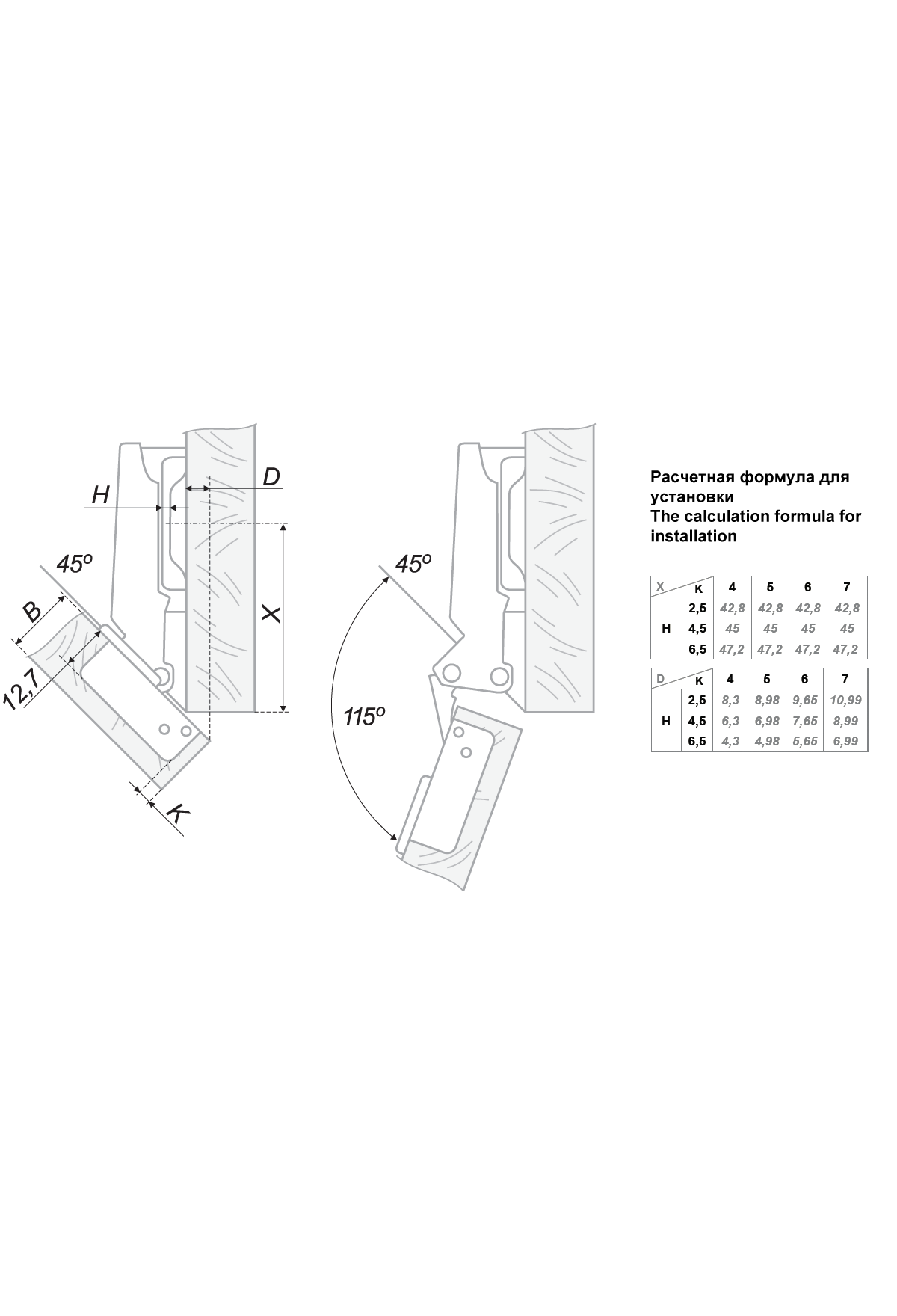 Угол установки петли (Петли) | -45 |