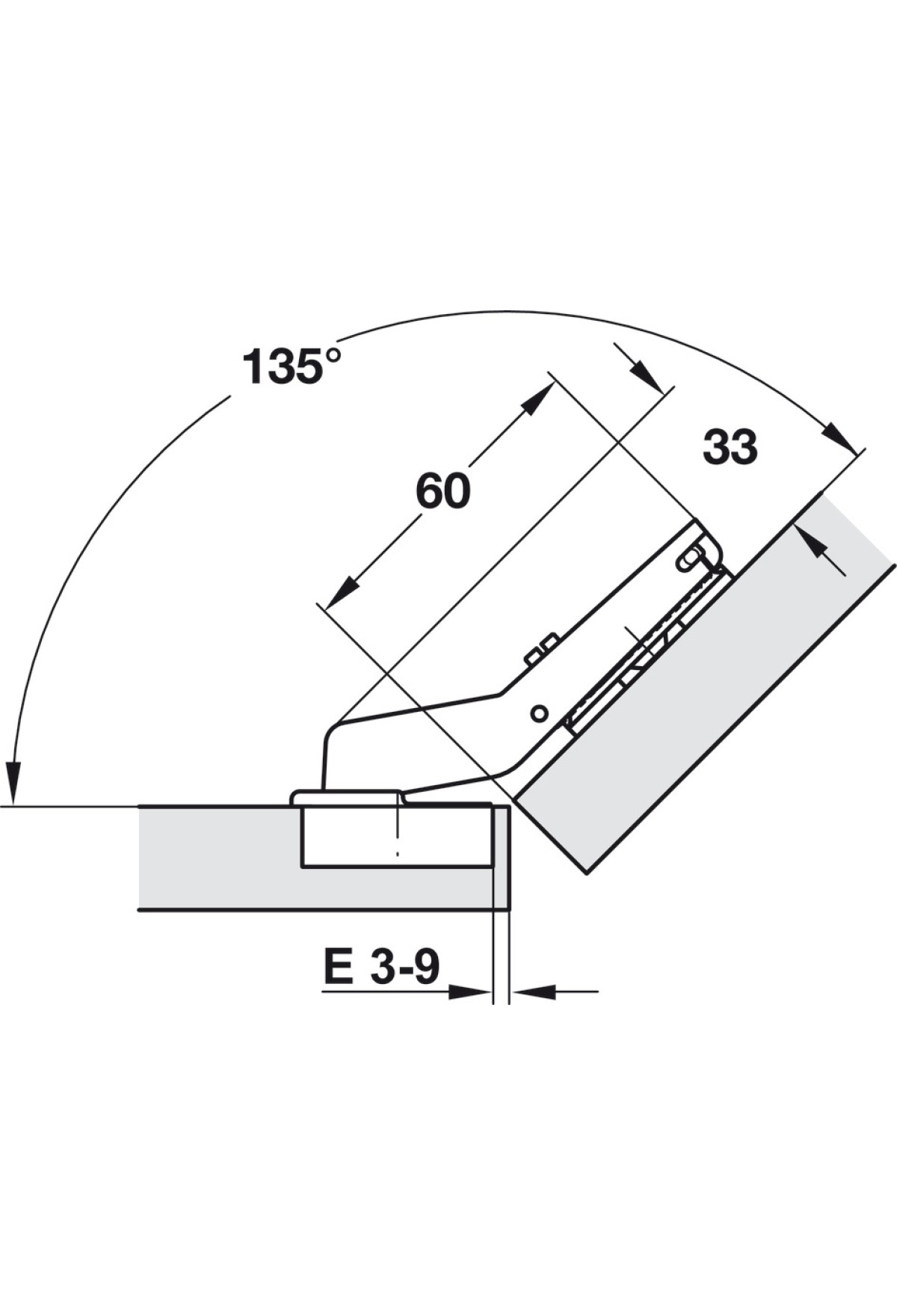 Технические характеристики Петля мебельная угловая Duomatic Standard 45 градусов с доводчиком 329.25.715 Hafele