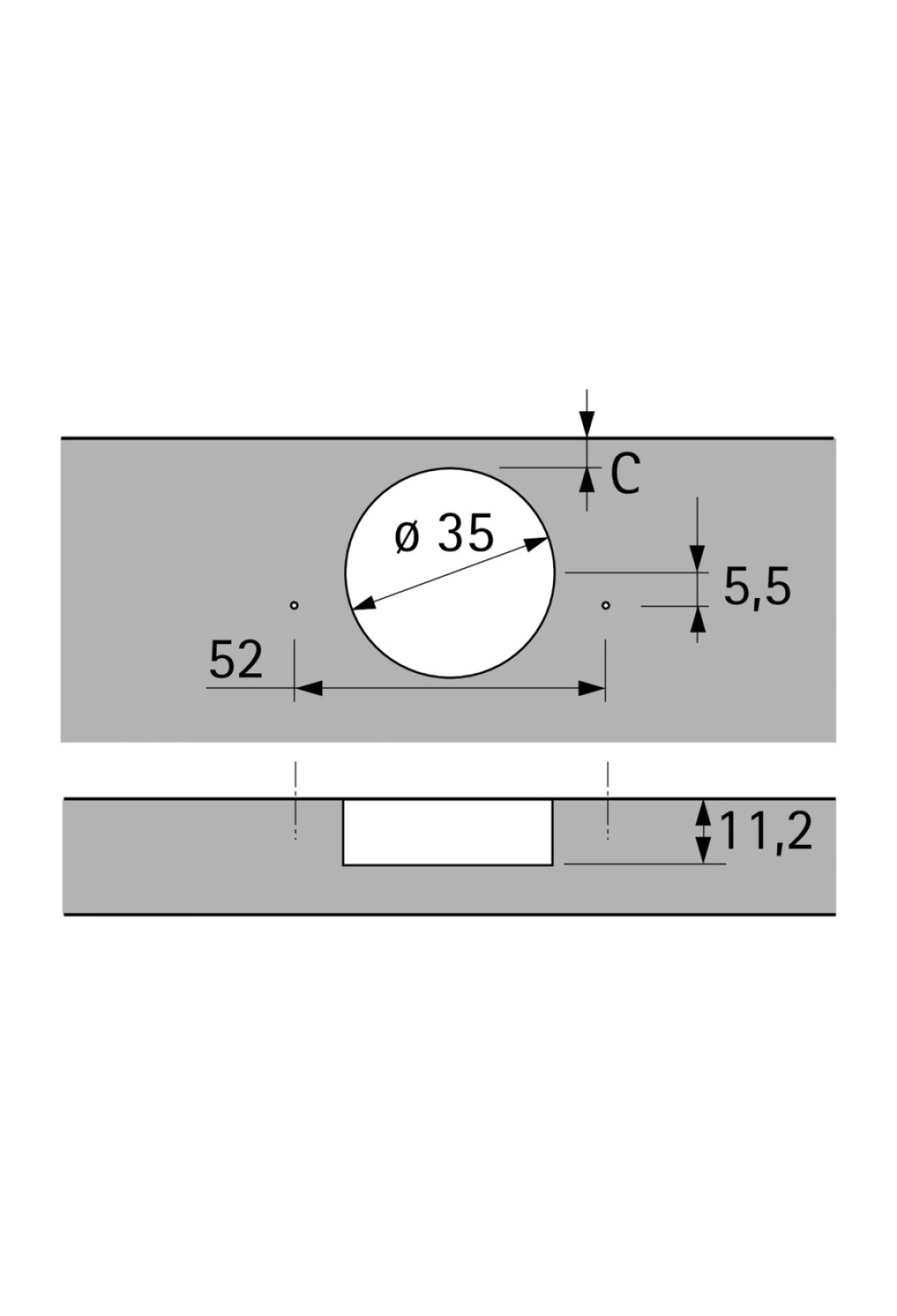 Скрытая петля с техникой защелкивания с функцией самозакрывания, без доводчика.
