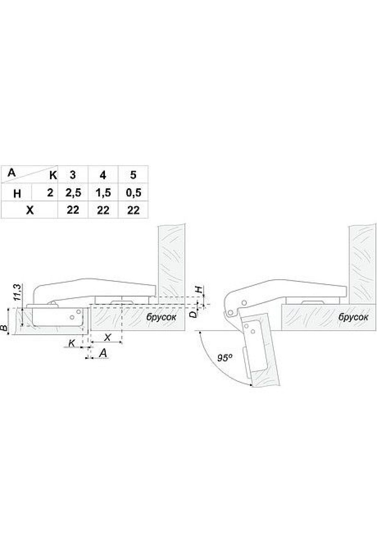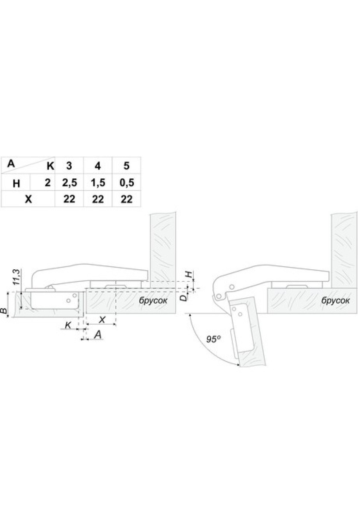 Технические характеристики Петля мебельная угловая Н=2мм для фальшпанелей H74302/0112 Boyard