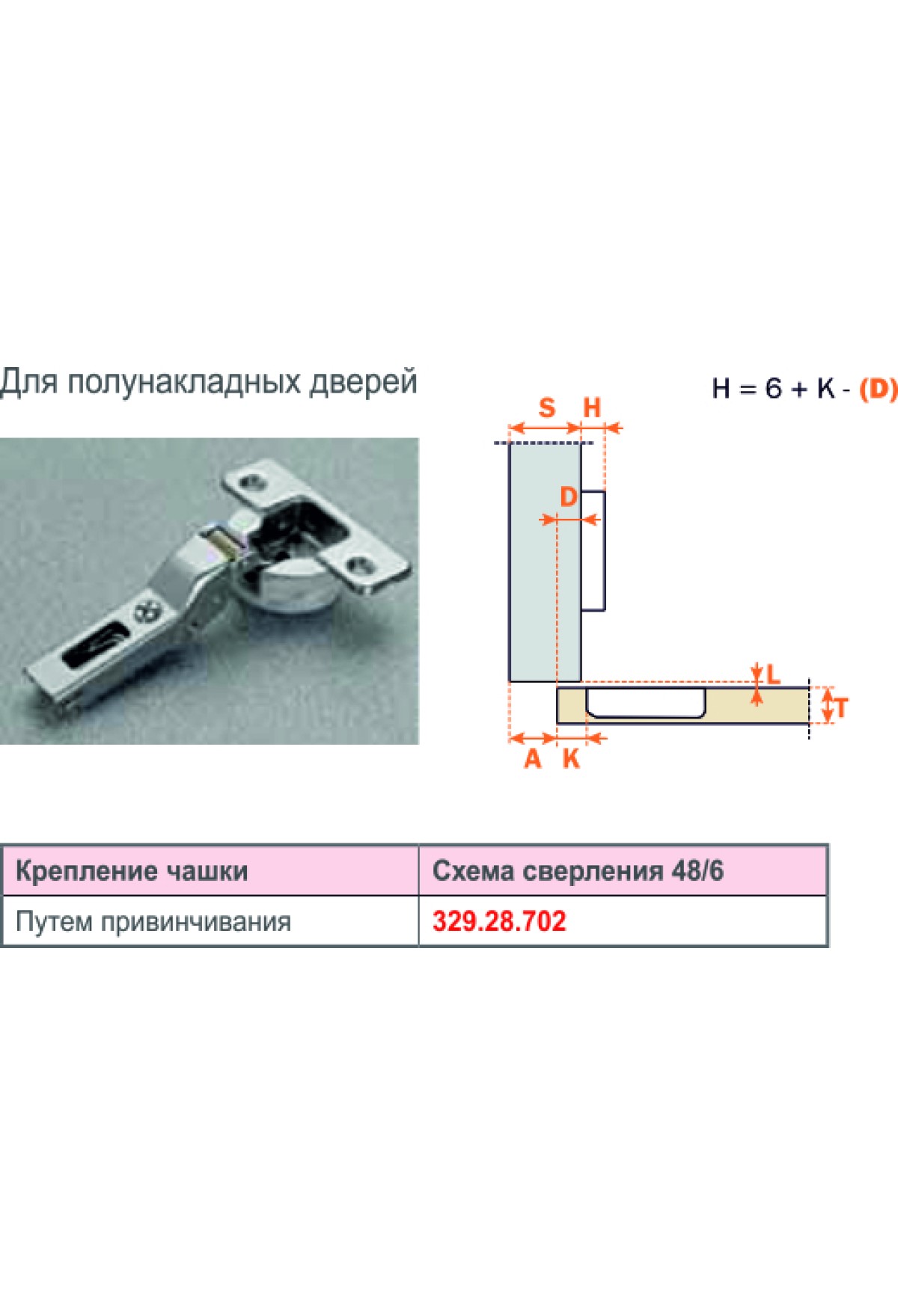 Петля мебельная вкладная Duomatic Premium 105 градусов с доводчиком 329.28.703 Hafele