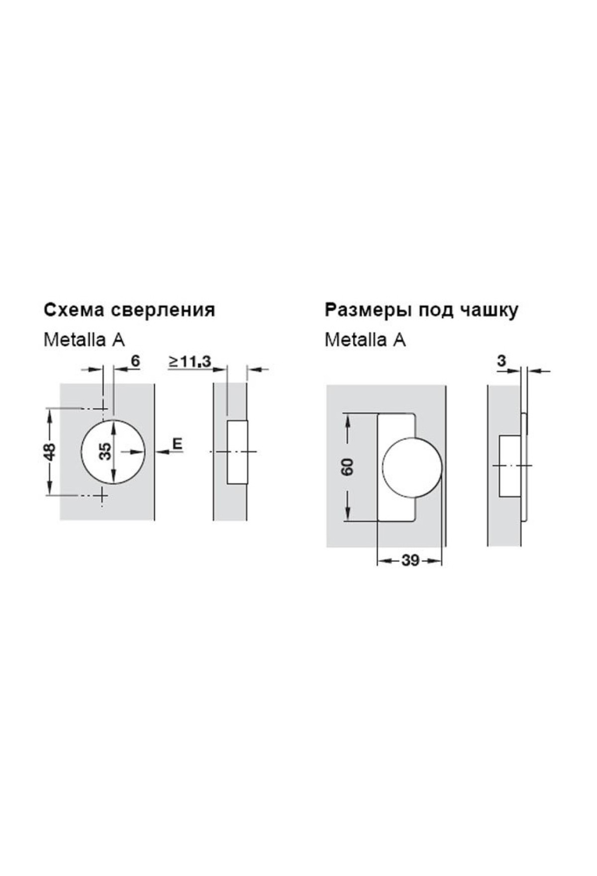 Технические характеристики петля Metalla А 110гр вкладная схема 52/5.5//311.90.505