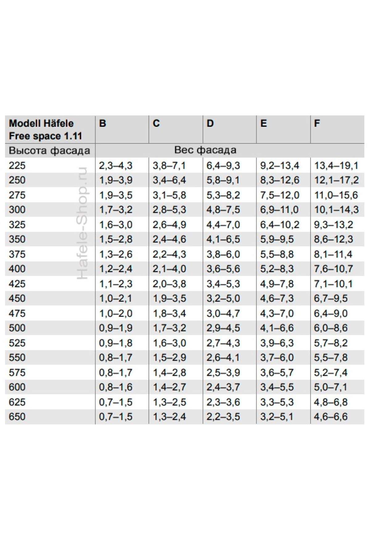 Размеры и вес фасада, которые подходят к данной модели подъемника указаны в дополнительных изображениях.