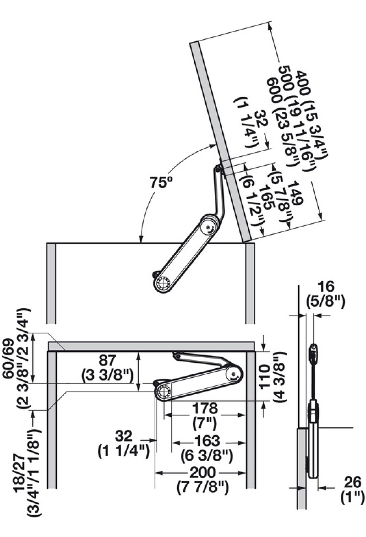 Технические характеристики Крепление к корпусу механизма Huwilift Maxi 373. 69.906 Hafele