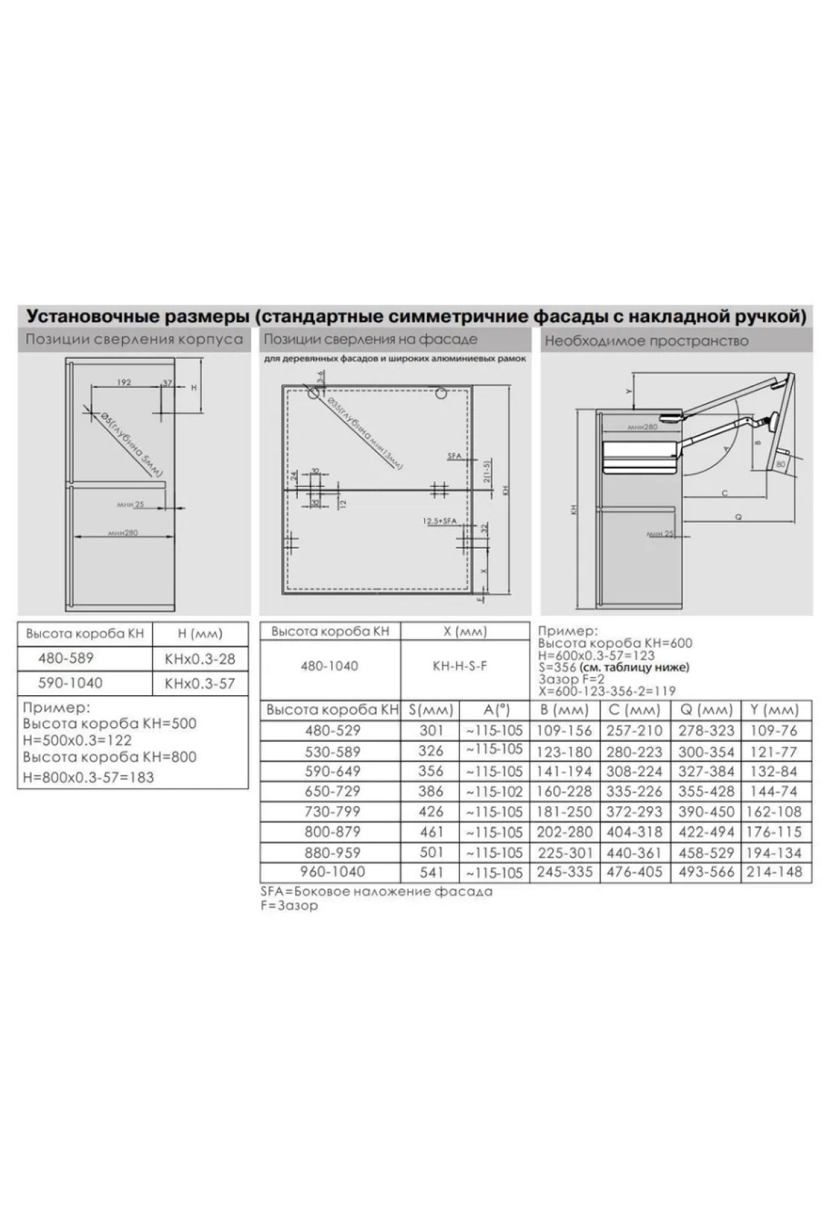•       Высота короба: 480 - 1040 мм