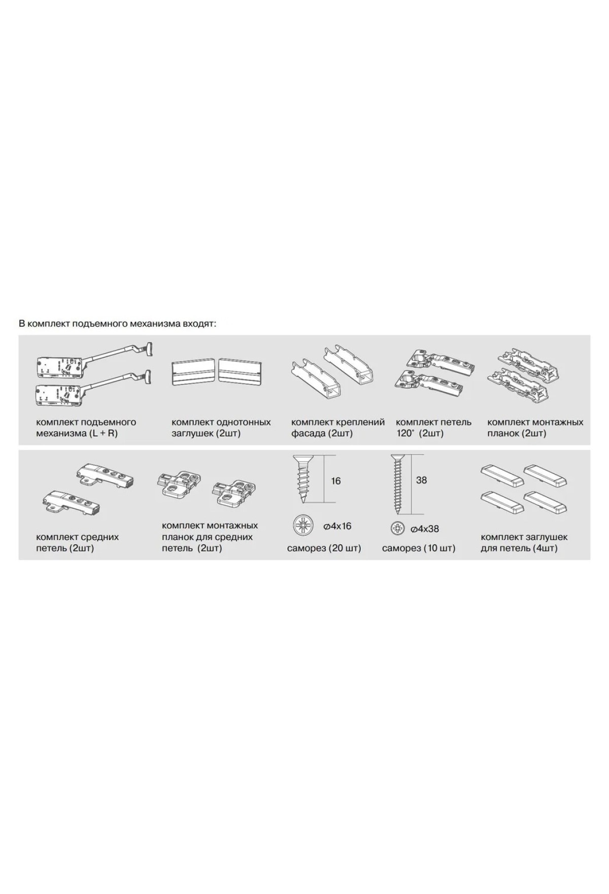 На складе Код товара: LV-49862 Комплект заглушкек к подъемному механизму Free Fold short серый 372.38.031 Hafele