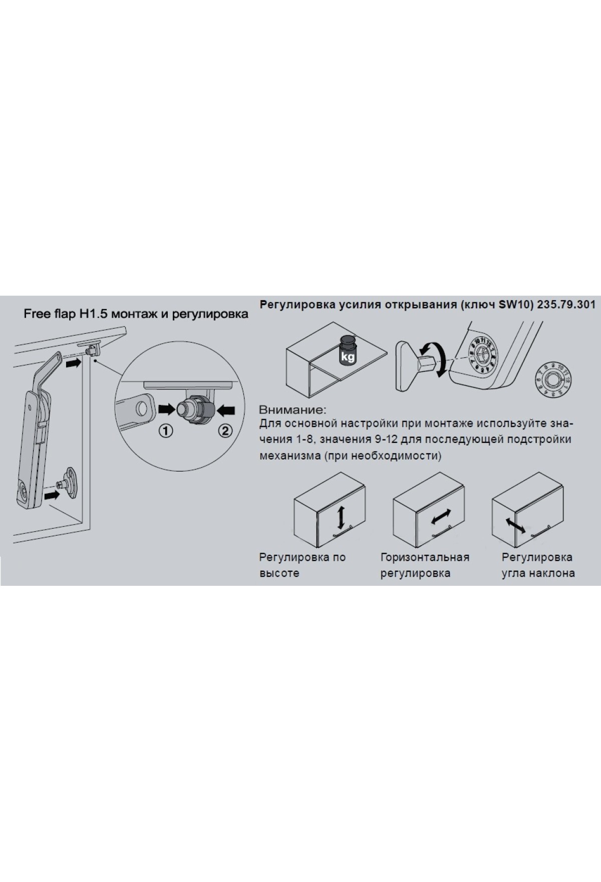 Технические характеристики Подъемный механизм Free flap H1.5 модель B белый 372.39.410 Hafele