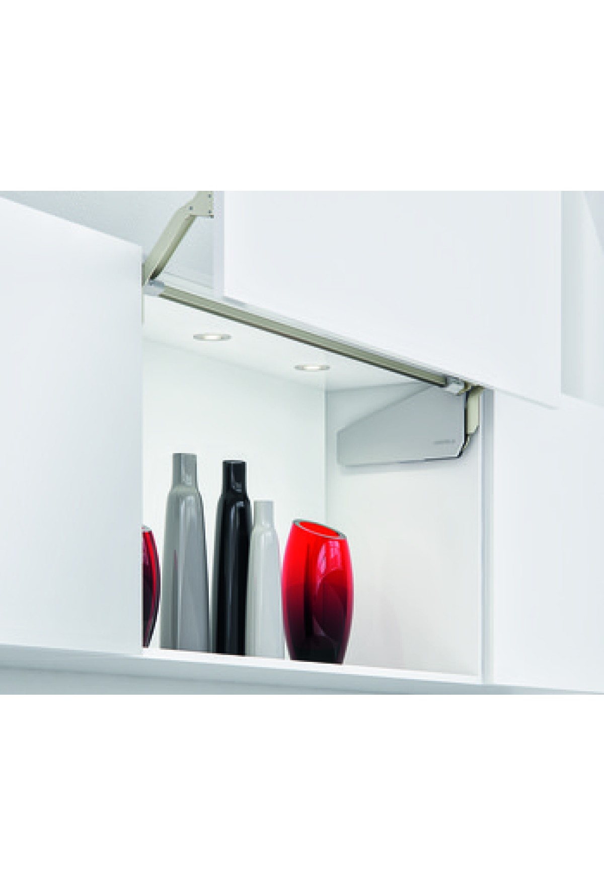 Подъёмный механизм для фасадов FREE FOLD, испытан под нагрузкой 15,2 кг., при ширине фасада 798 мм, в количестве 40 000 циклов открывания и закрывания.