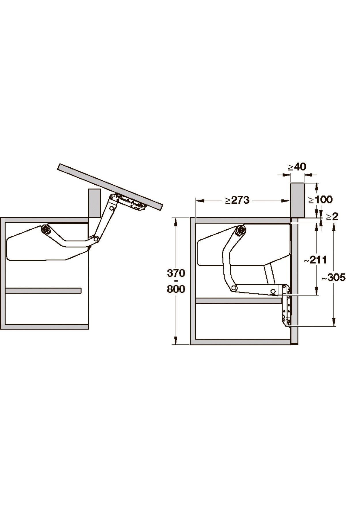 Технические характеристики Подъемный механизм Free swing 670-800мм на 5,3-11,3кг левый 372.34.423 Hafele