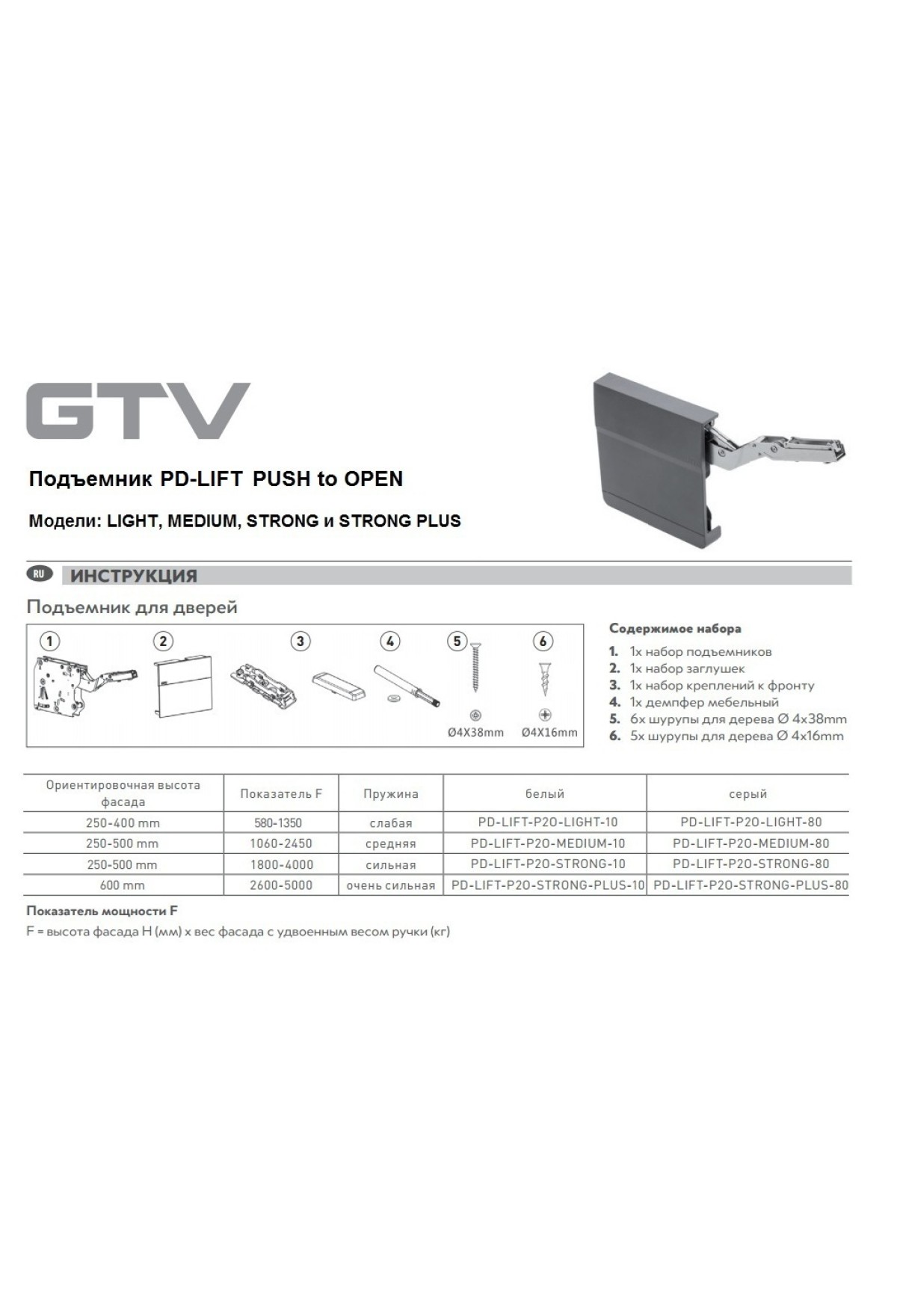 Подъёмник PD-LIFT push to open, сильный коэффициент подъемной силы 1800-4000.