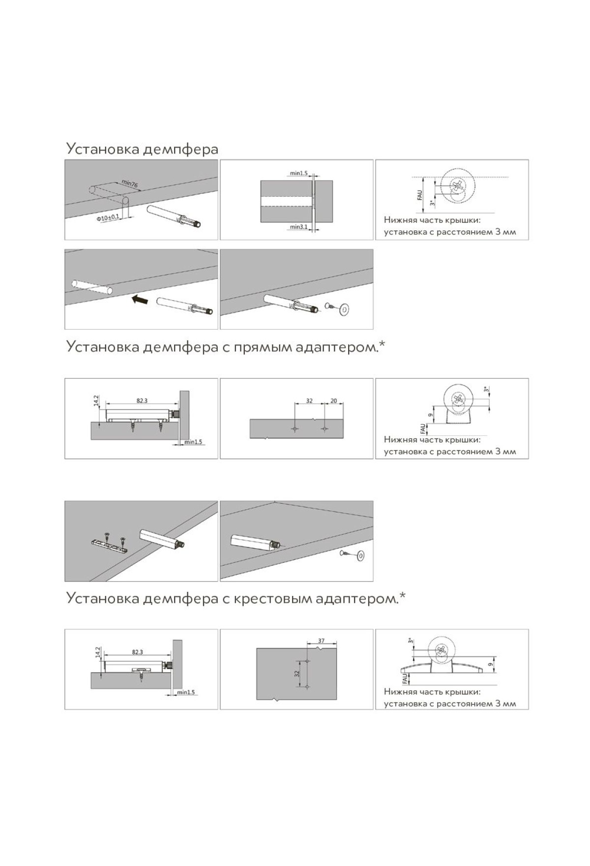 Регулировка фасада по ширине, высоте и глубине (с помощью предустановленных регулировочных винтов).
