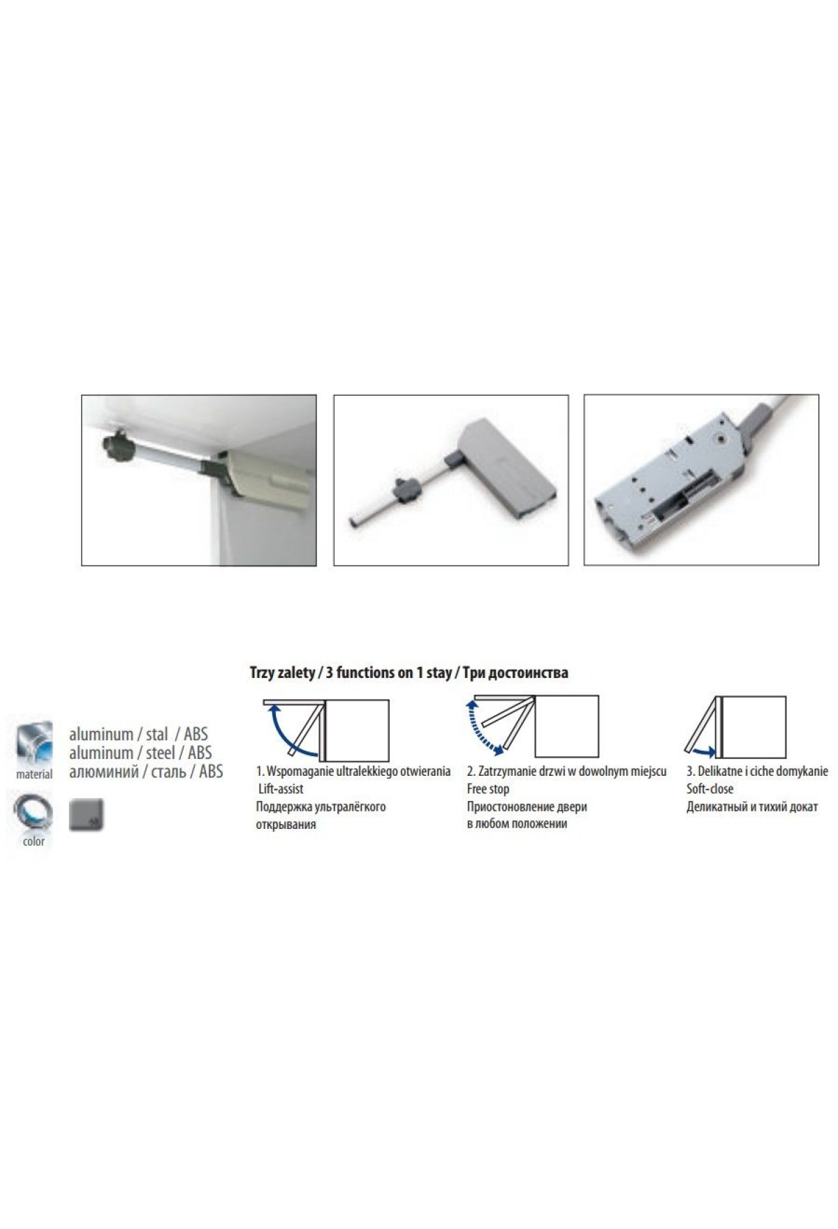 | Тип открывания (Подъемные механизмы) | Перпендикулярно корпусу |