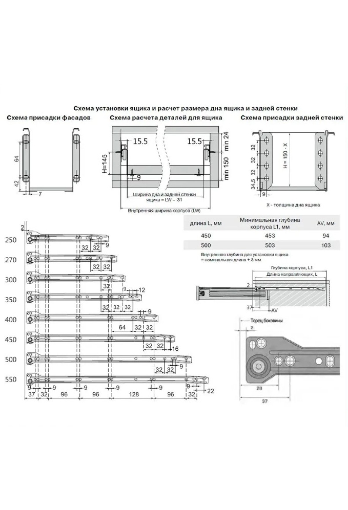 Высота боковины ящика, мм | 150 |