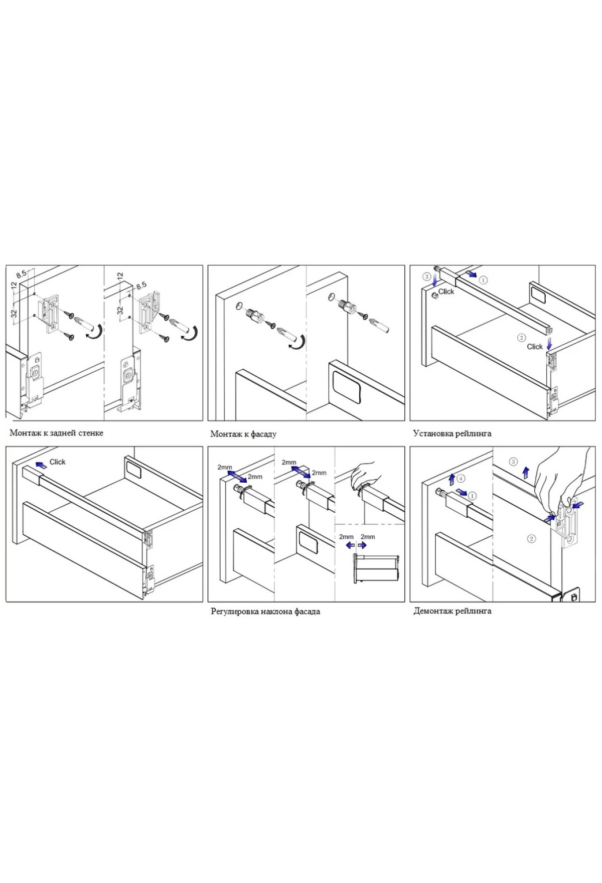Регулировки угла наклона фасада ящика.