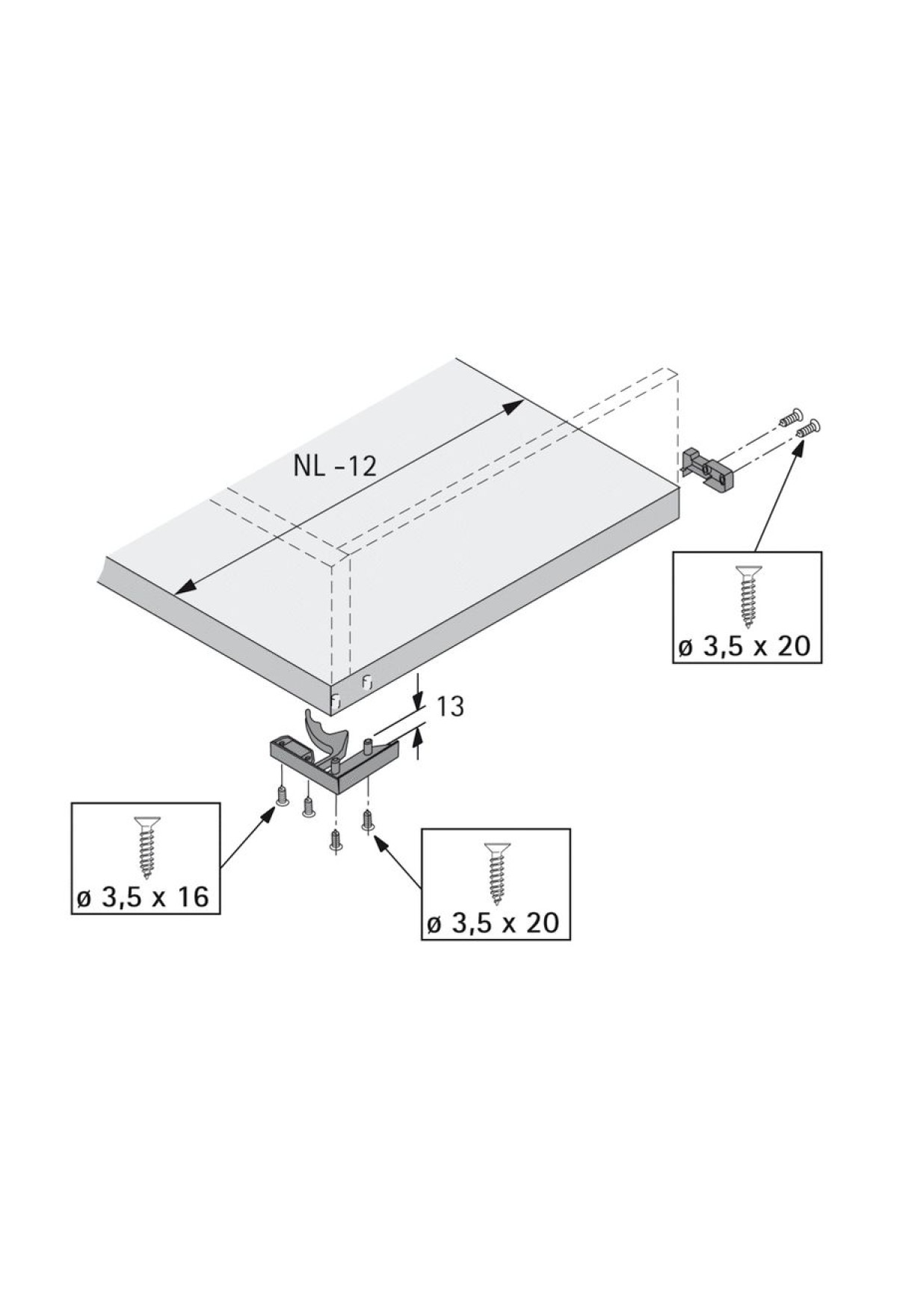 - Фиксаторы направляющих Quadro надвижного монтажа для деревянных ящиков 9231329 Hettich