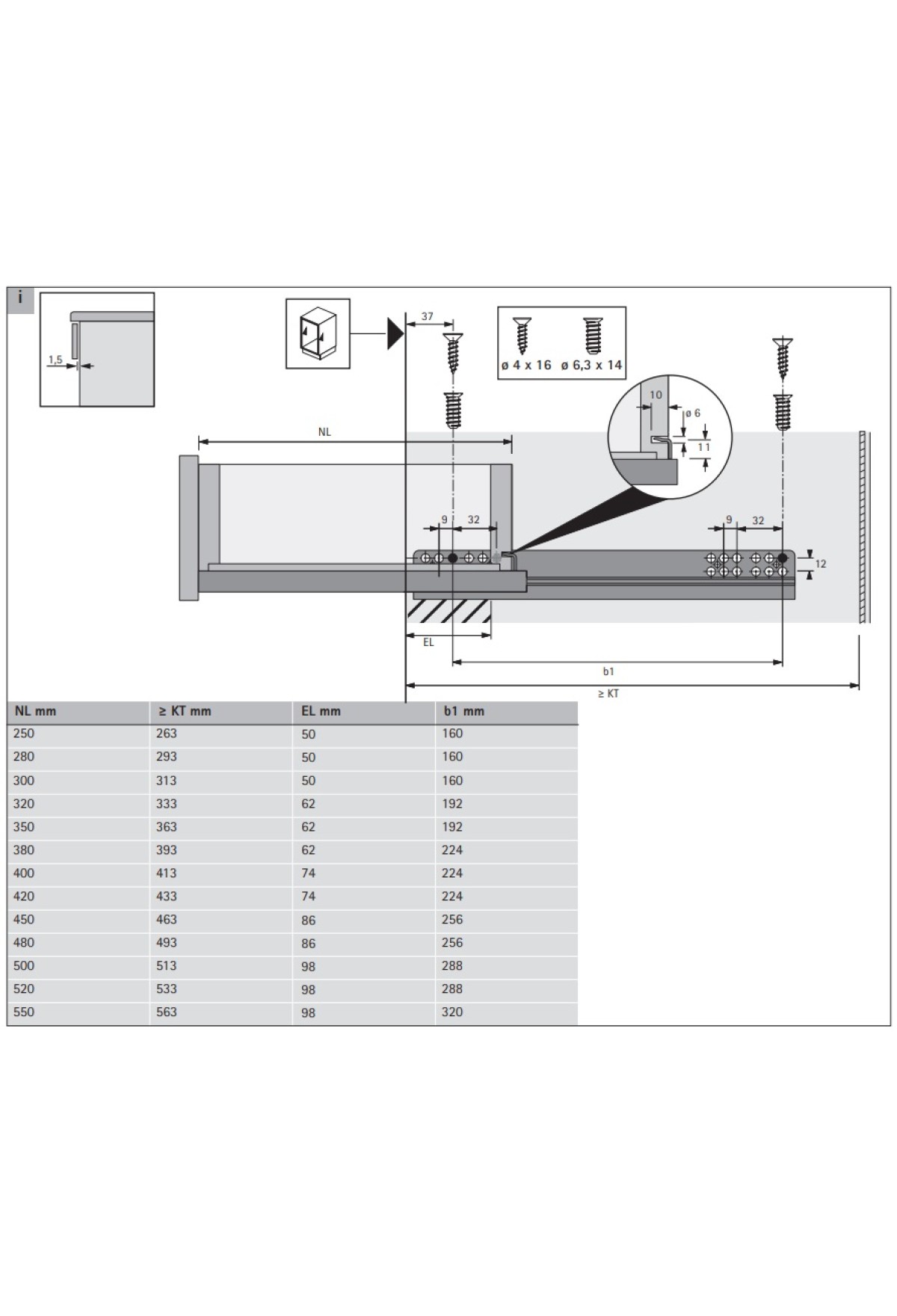 При использовании задней детали крепления длину ящика необходимо уменьшить на 10 мм. (NL) (NL - 10 мм)