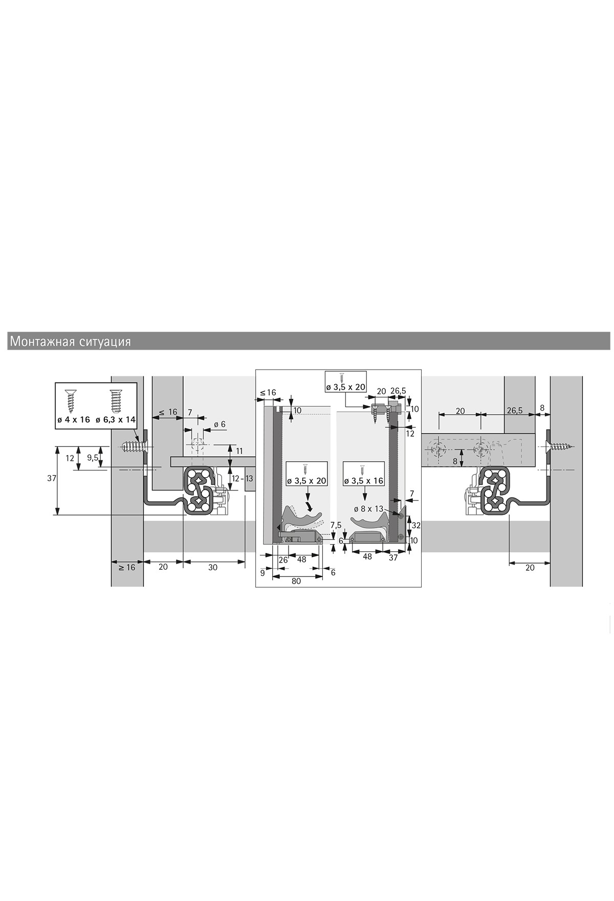 - Направляющая скрытого насадного монтажа частичного выдвижения Quadro Push to Ope 350мм правая 9099947 Hettich