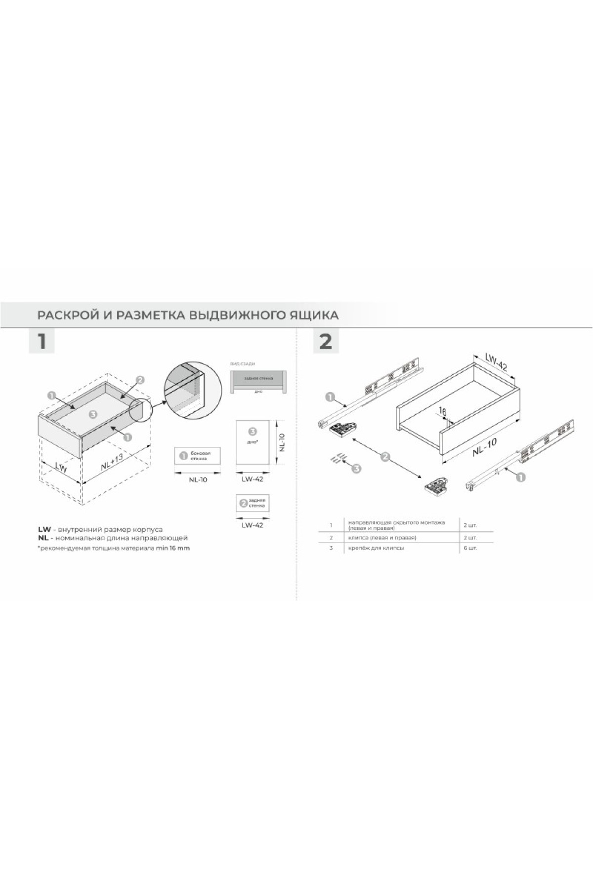 простой монтаж выдвижного ящика на направляющие и быстрый демонтаж;