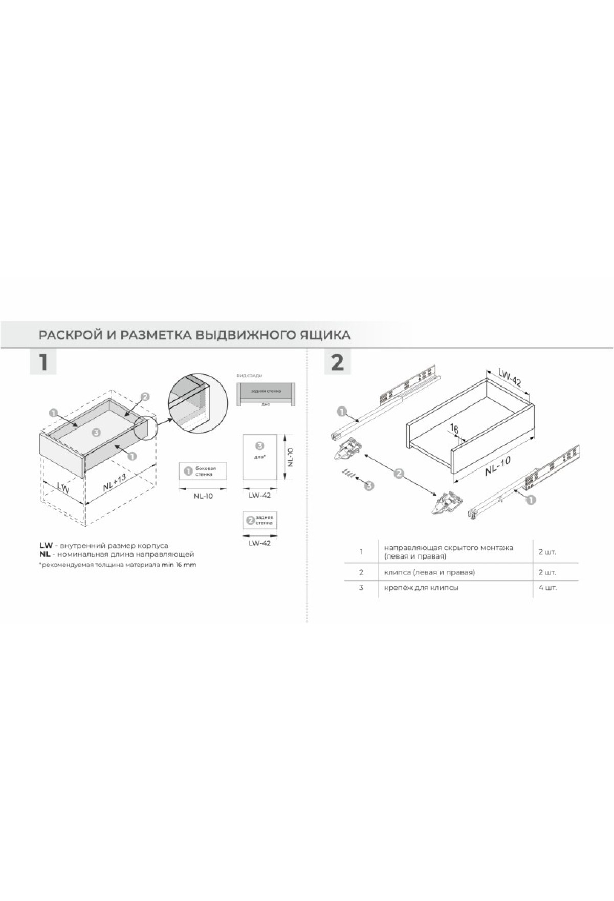 | Метод крепления направляющих (Скрытые направляющие) | Надвижной быстрый монтаж (с пласт. фиксатором) |