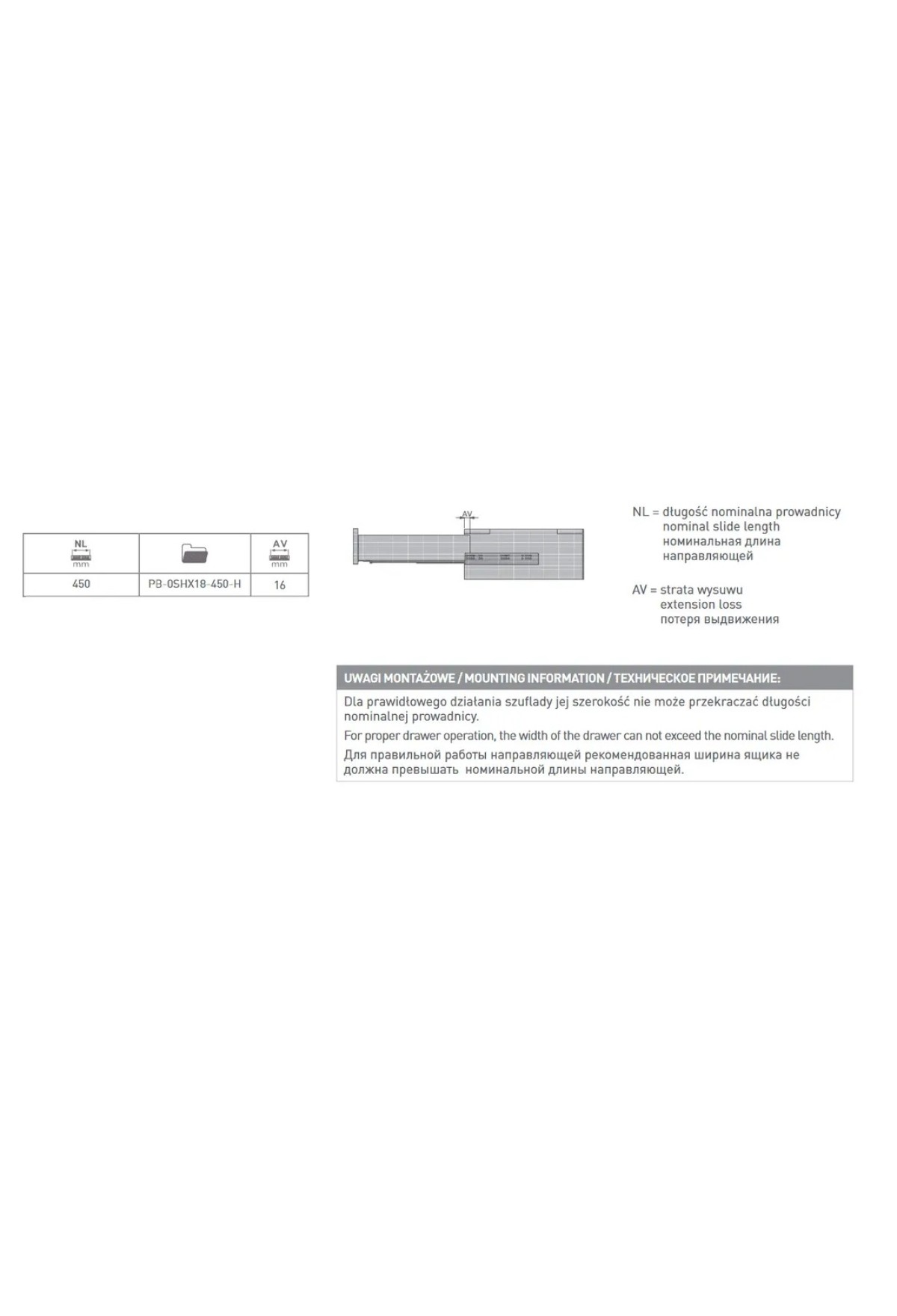 Длина, мм (Система выдвижения) 300