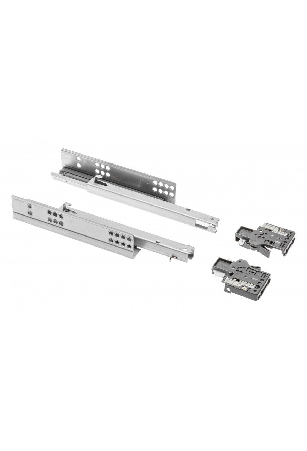 Характерная особенность направляющих MODERN SLIDE - скрытый монтаж, когда их установка осуществляется не на боковины ящика, а под его дно.