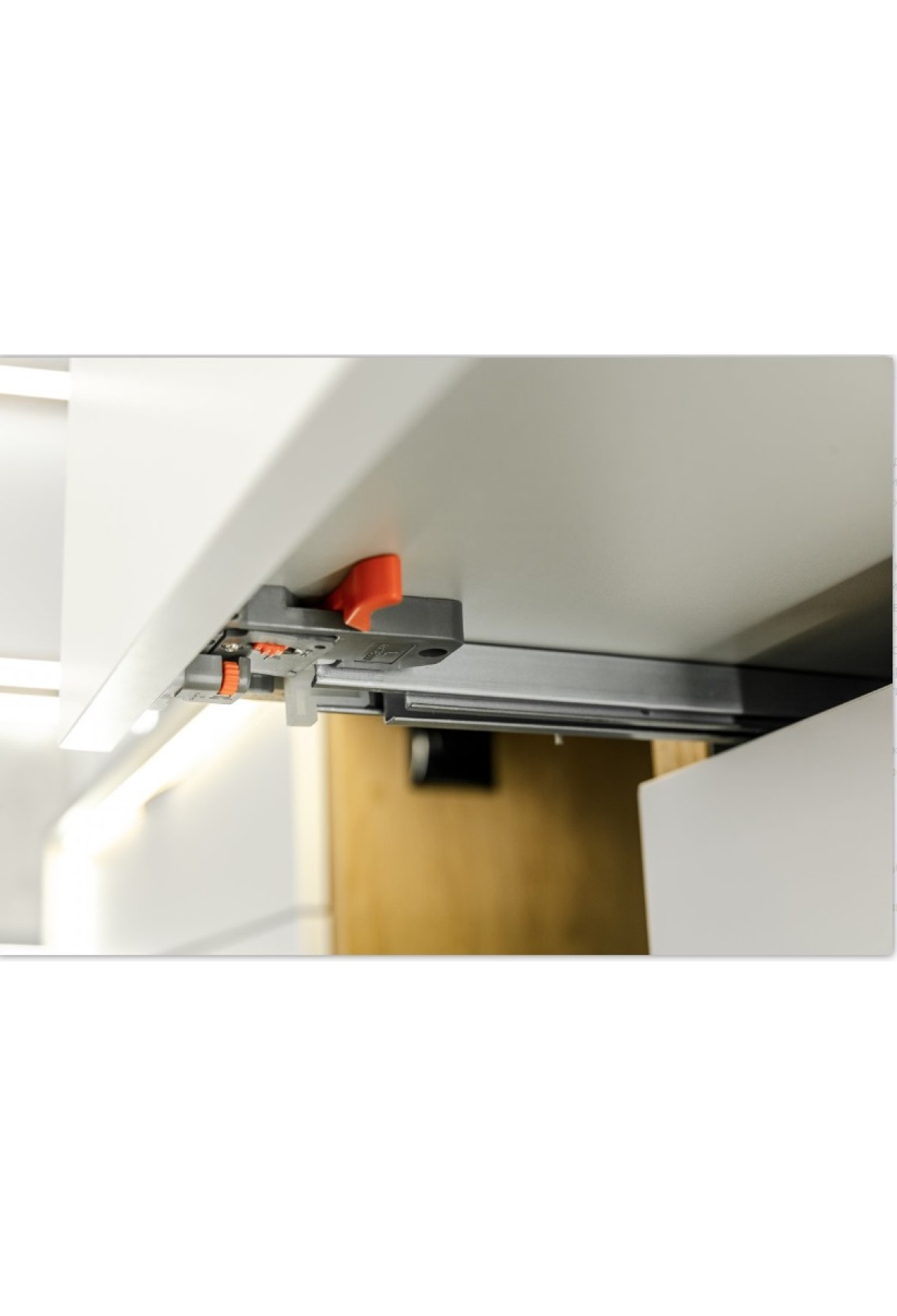 Направляющая скрытого монтажа с доводчиком.Используется технология выдвижного монтажа с креплением, не требуется использование инструментов. Кроме того, для нижнего монтажа характеризуется скрытым креплением к нижней части ящика, что позволяет сохранить эстетичный внешний вид ящика.Бесшумный доводчик повышает комфорт пользования,поэтому система отлично работает в каждой комнате. Полное выдвижение позволяет доступ ко всей глубине ящика, а регулировка в 3 положениях без использования инструментов будет облегчать процесс монтажа и соответствующей регулировки направляющей к ящику. Продукт найдет свое универсальное применение для ящиков с боковыми стенками из материала толщ., 16 - 19 мм. Кроме того, срок службы продукта сертифицирован на 60000 циклов и может противостоять нагрузкам до 30 кг.