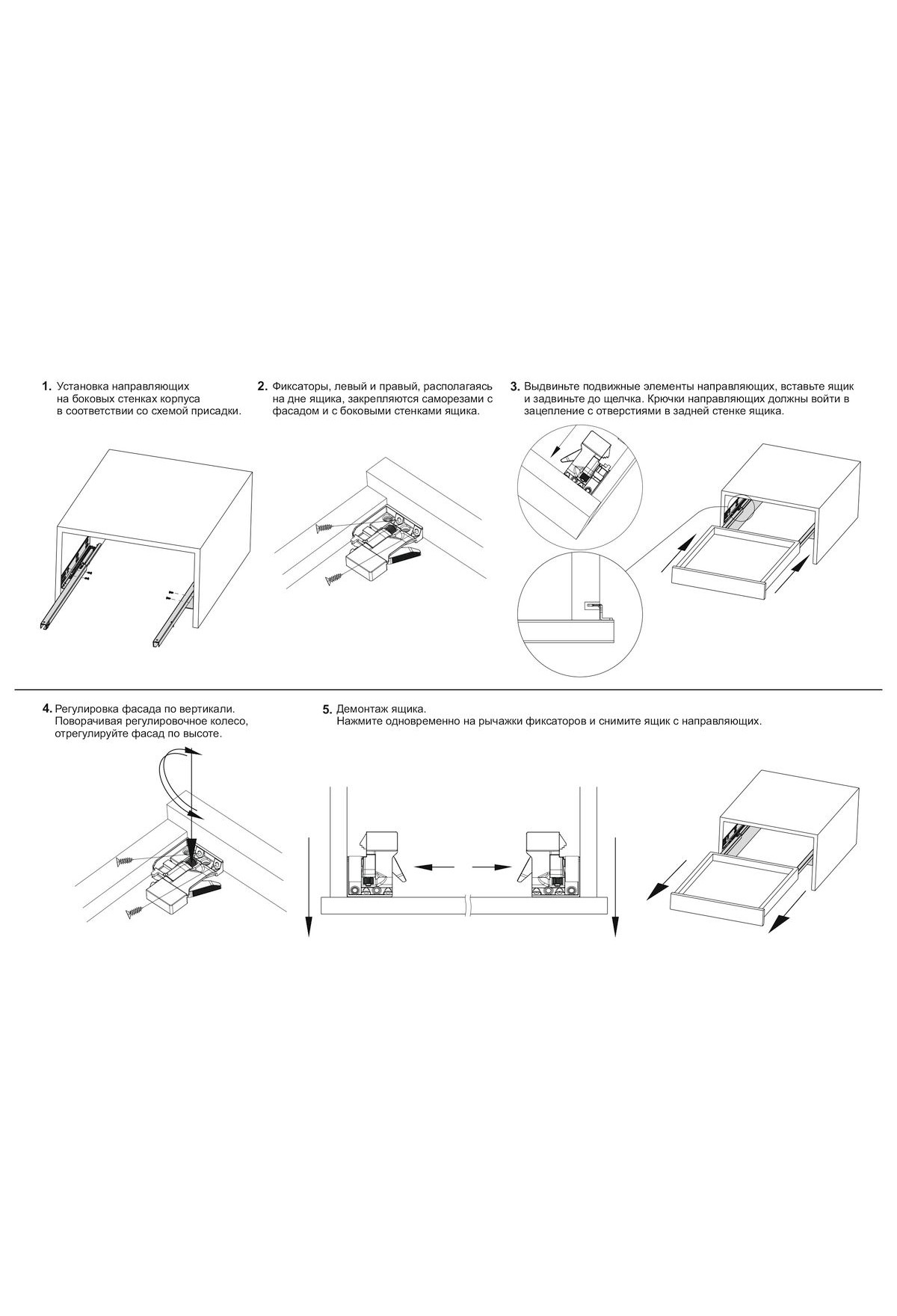 Монтаж без зазоров между фасадом и корпусом при установке неглубоких (до 350 мм) ящиков.