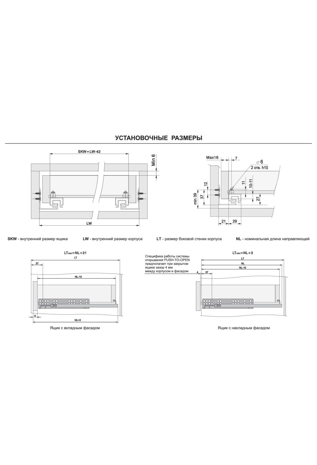 | Метод крепления направляющих (Скрытые направляющие) | Надвижной быстрый монтаж (с пласт. фиксатором) |