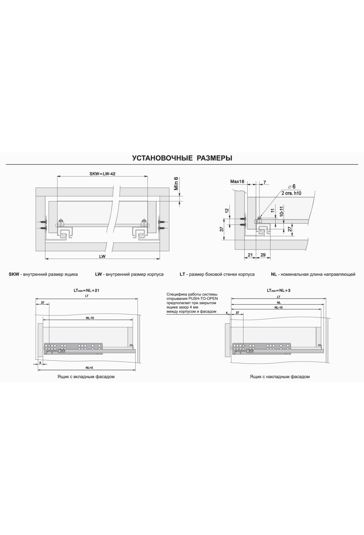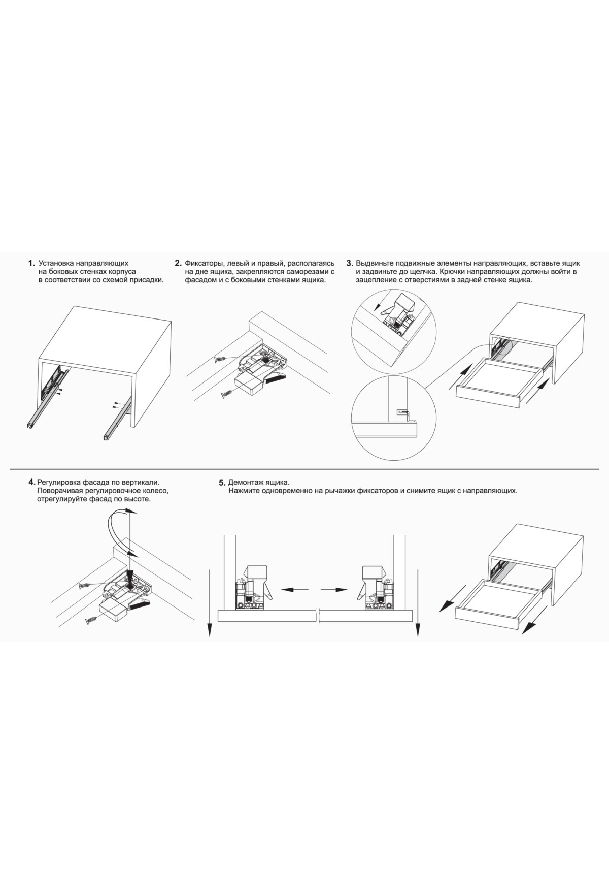 | Метод крепления направляющих (Скрытые направляющие) | Надвижной быстрый монтаж (с пласт. фиксатором) |