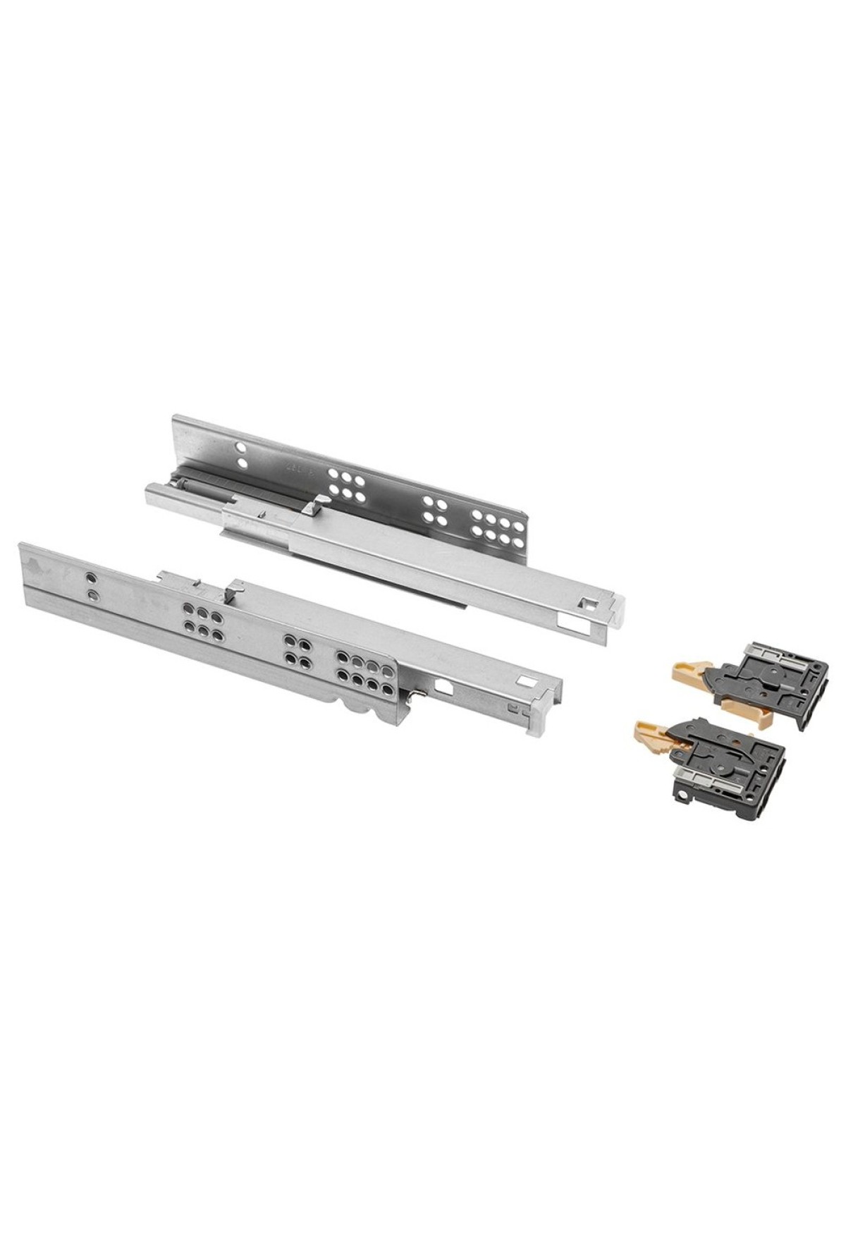 Характерная особенность направляющих MODERN SLIDE - скрытый монтаж, когда их установка осуществляется не на боковины ящика, а под его дно.