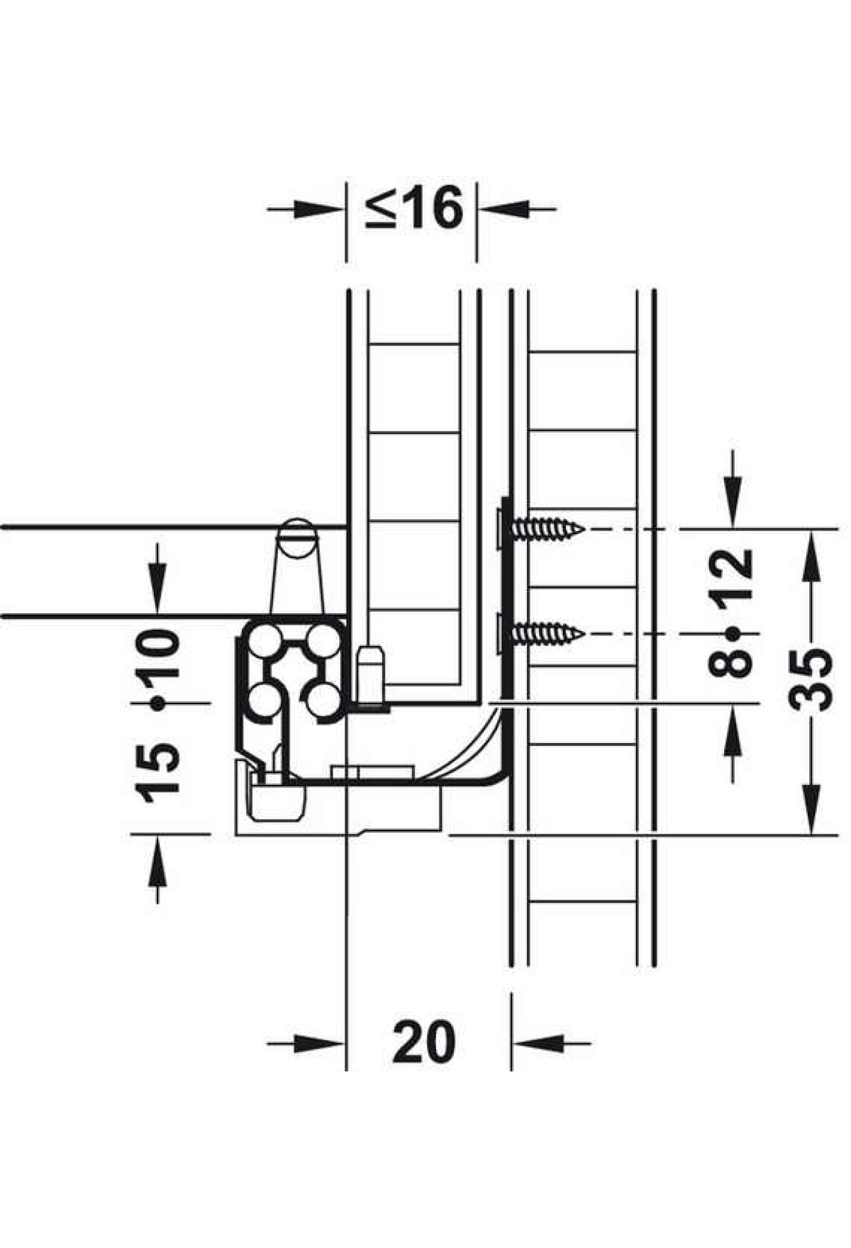 Нижний монтаж (под ящиком) путем привинчивания шурупами.