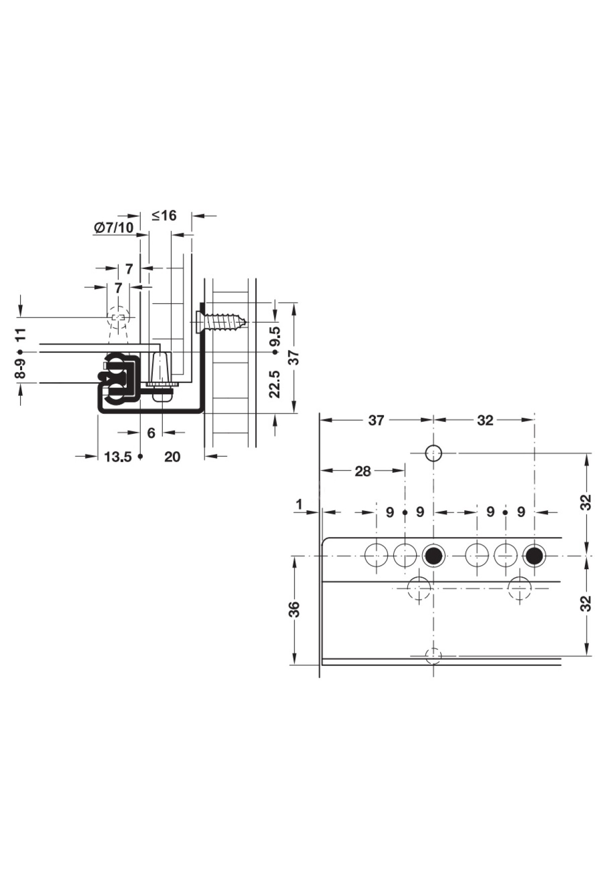 Нижний монтаж (под ящиком) путем привинчивания шурупами.