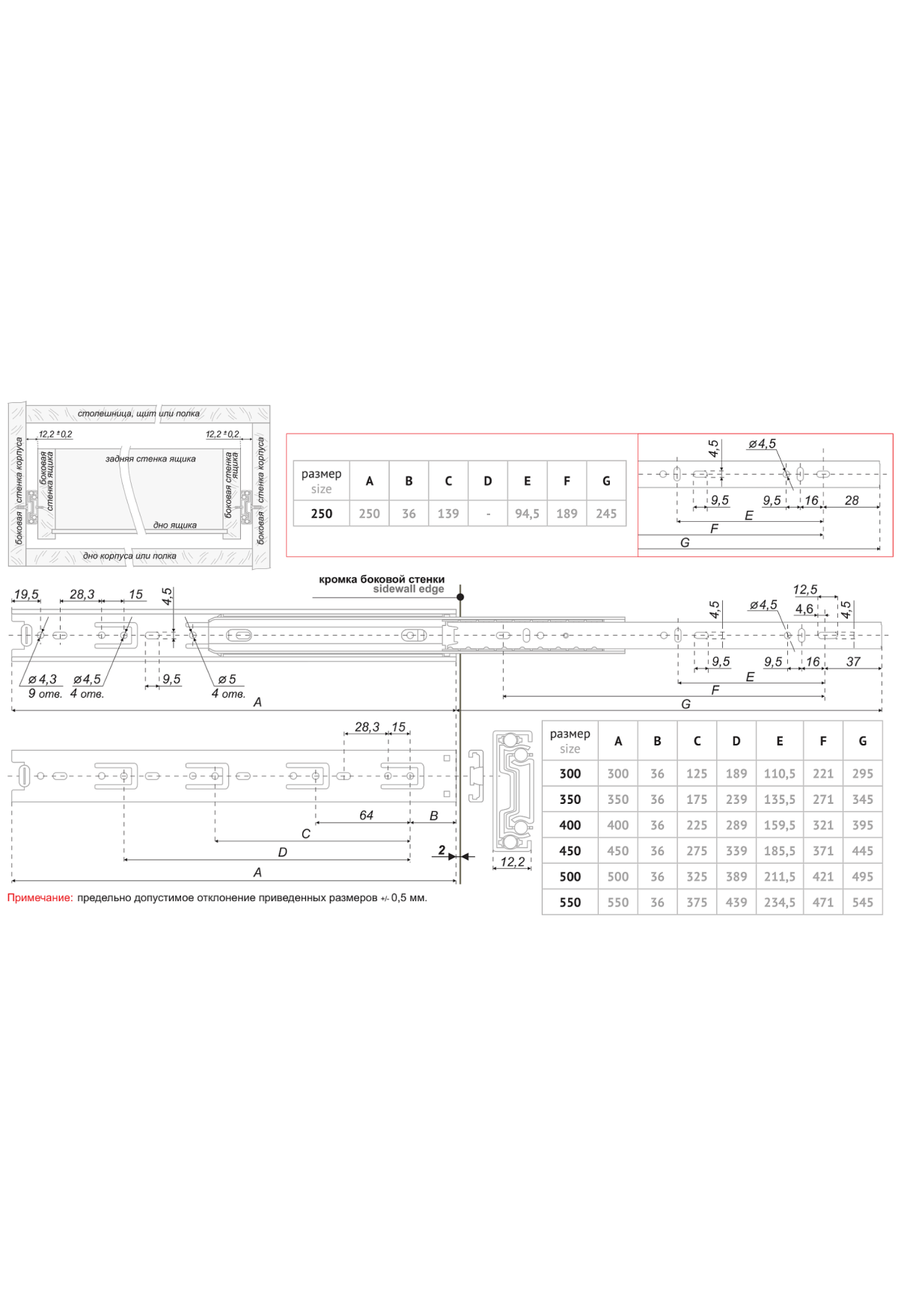 - Направляющие шариковые полного выдвижения 450мм DB3501Zn/450 Boyard
