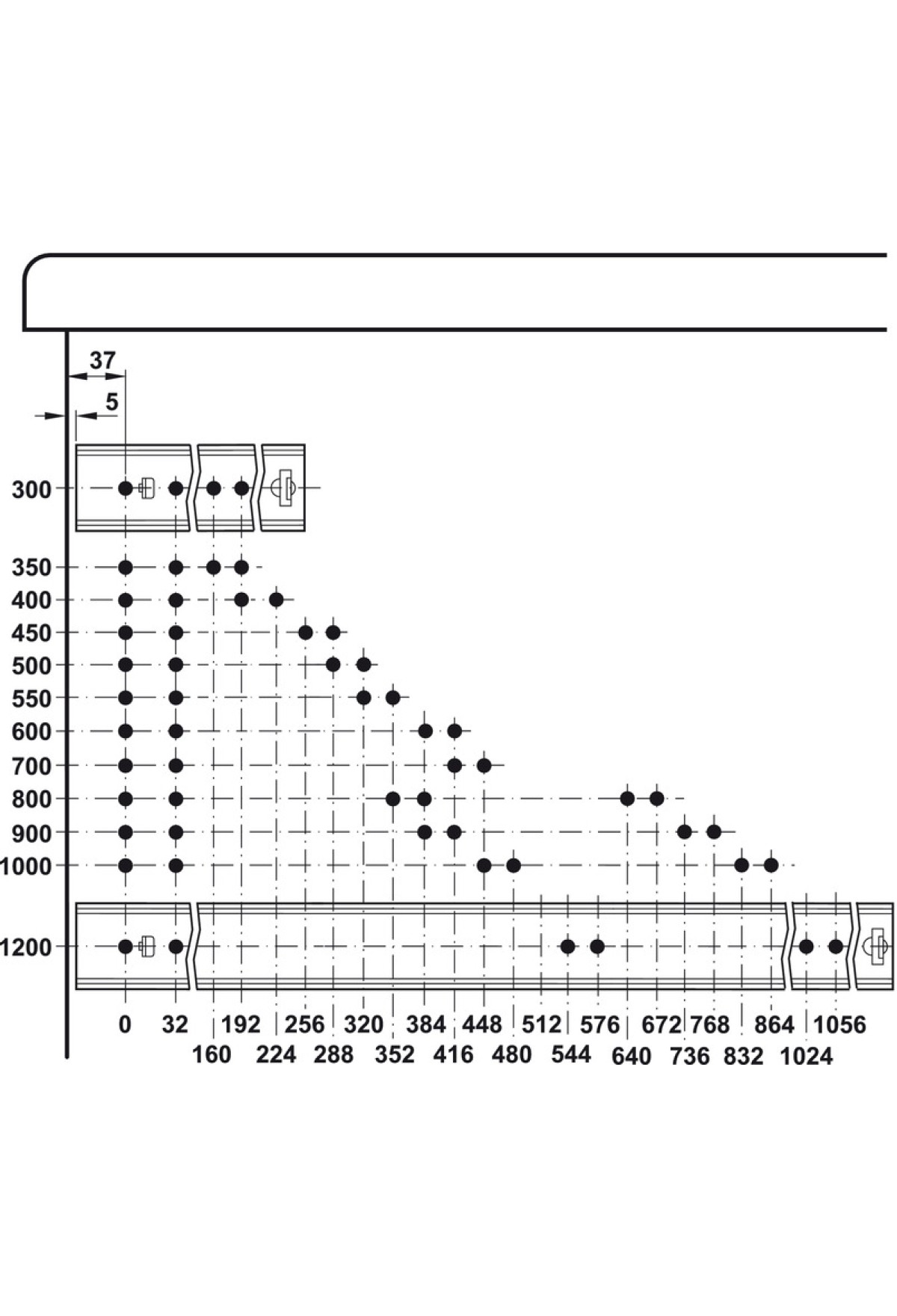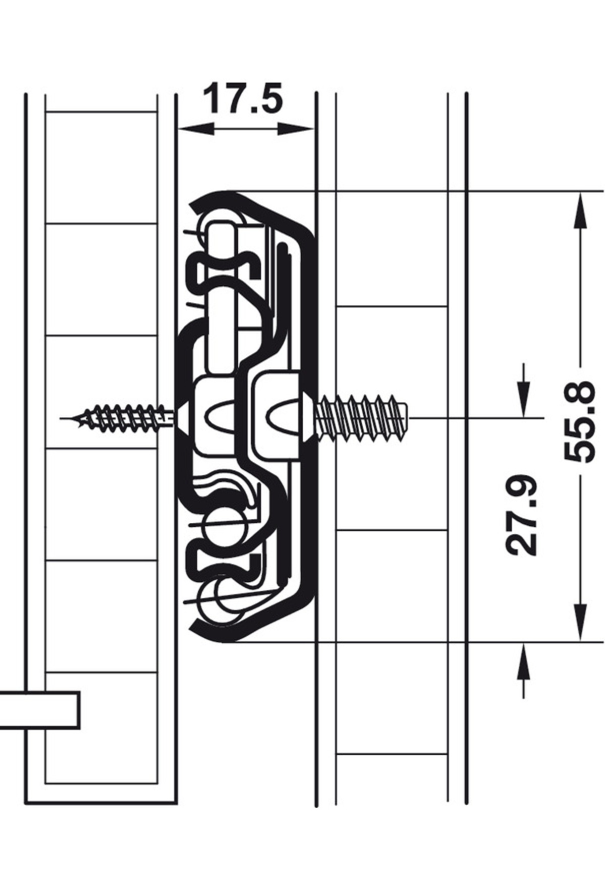 Монтажный размер между боковой стойкой корпуса и боковиной выдвижного ящика: 12,7 мм.