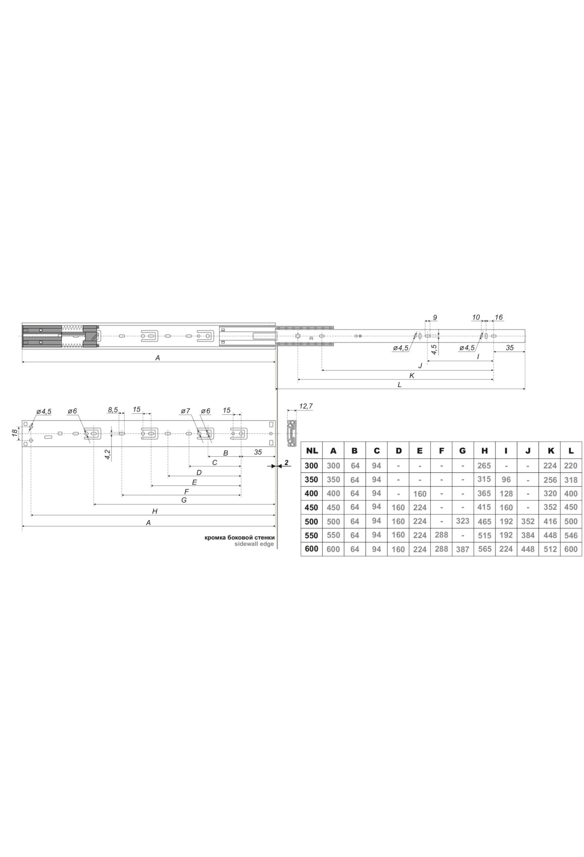 Код товара: LV-09011 Направляющие шариковые полного выдвижения с доводчиком 350мм цинк