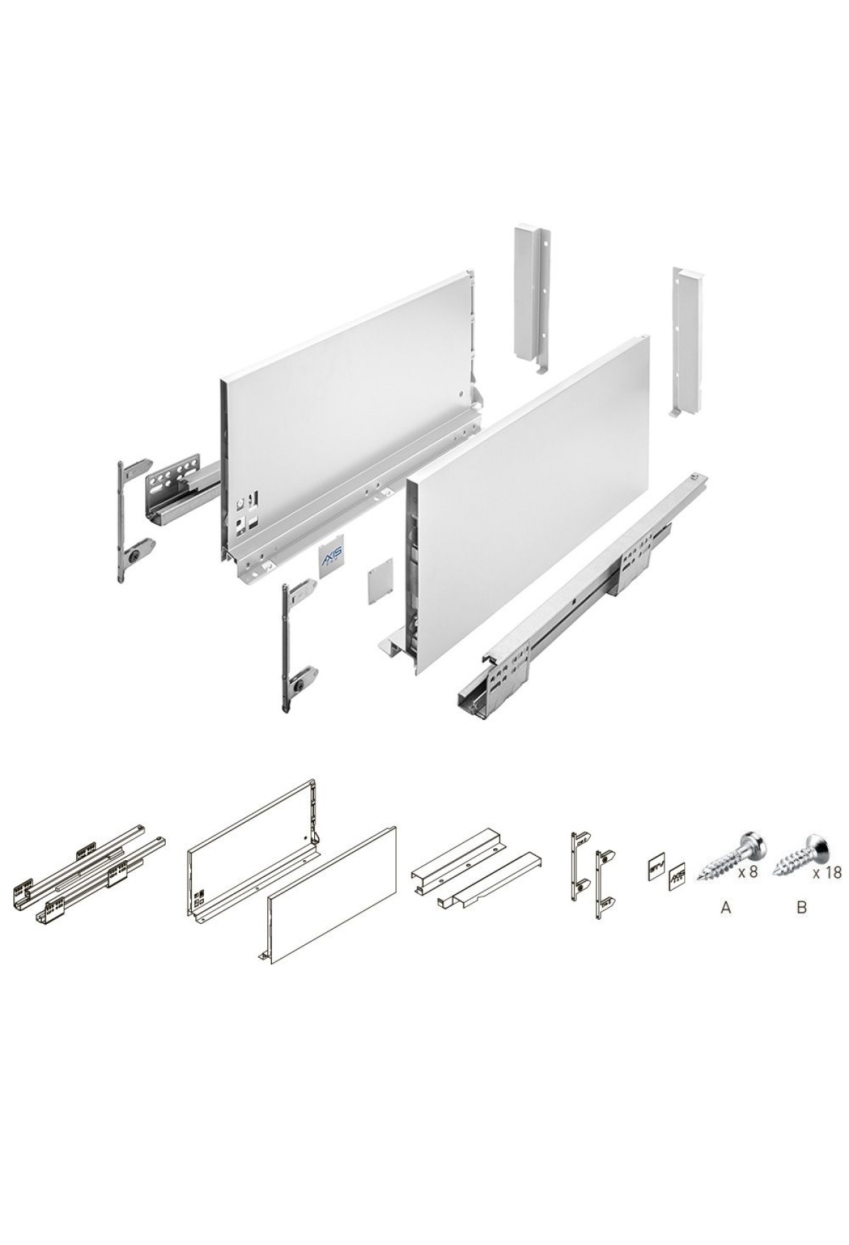 Максимальная вместимость ящика, достигнутая посредством нижнего монтажа направляющих и минимальной толщины боковых панелей.