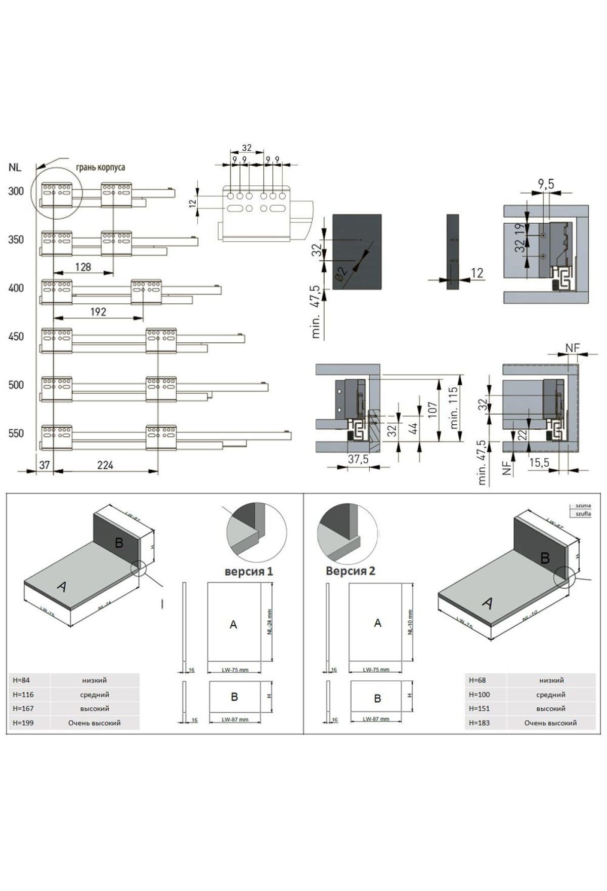 Регулировка фасада в вертикальной (+/- 2 мм) и горизонтальной (+/- 2 мм) плоскостях.