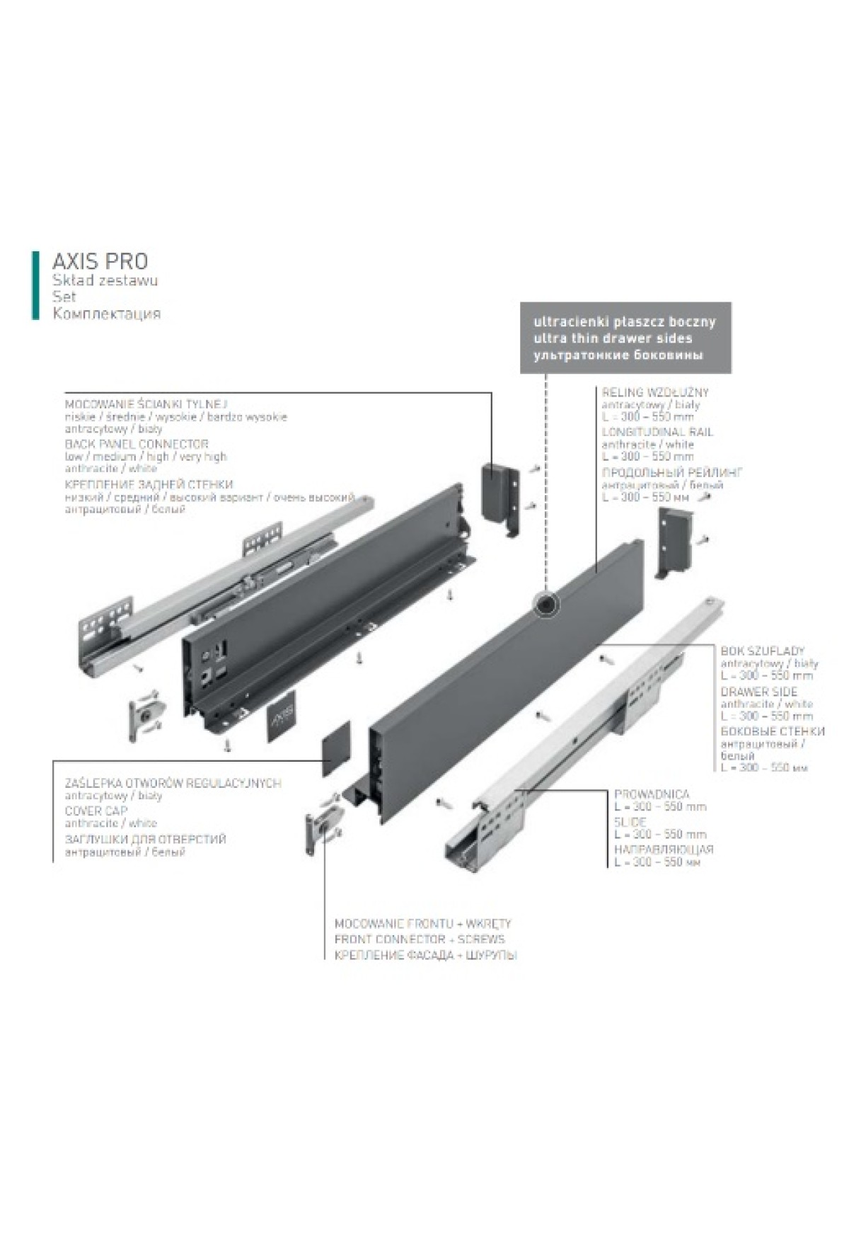 Максимальная вместимость ящика, достигнутая посредством нижнего монтажа направляющих и минимальной толщины боковых панелей.