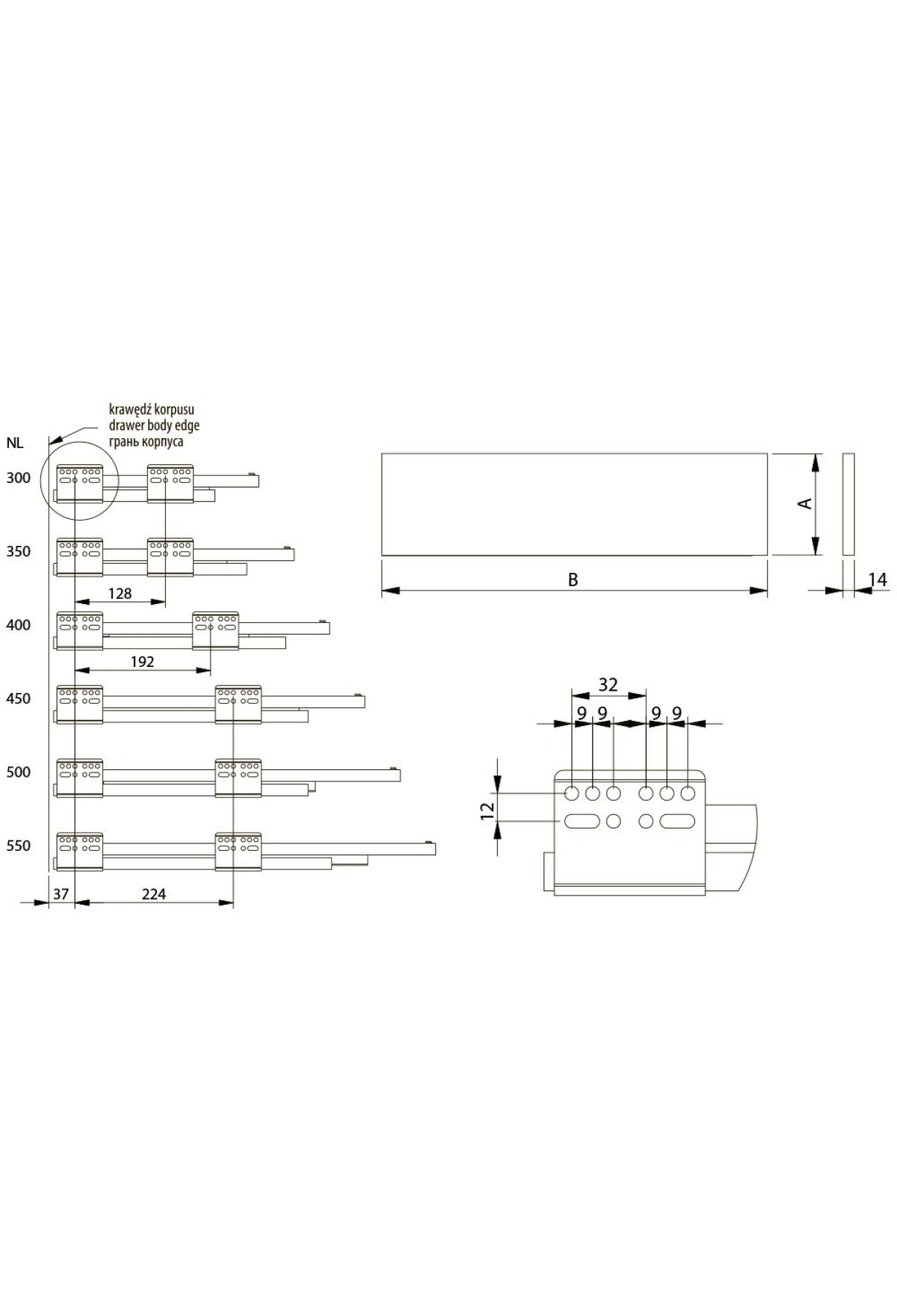 Высота боковин: 116мм (средний ящик)