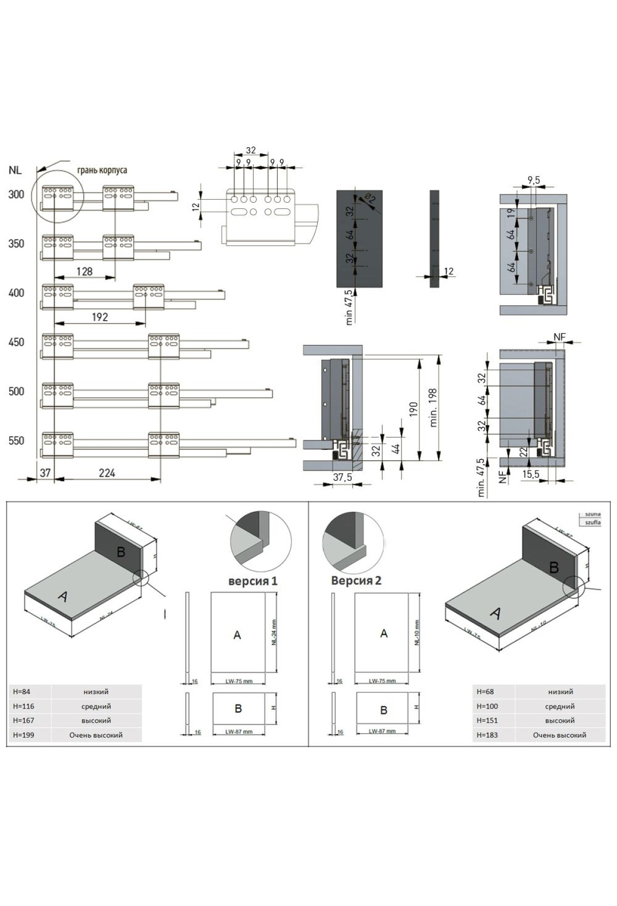 Высота боковин: 167мм (высокий ящик)