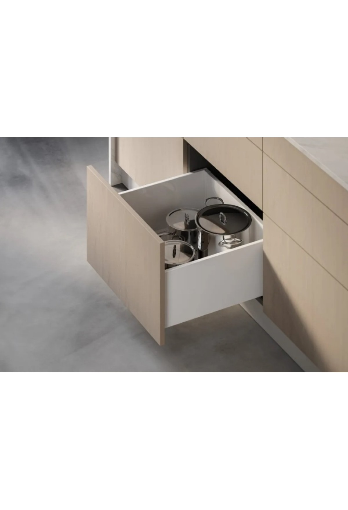 Максимальная вместимость ящика, достигнутая посредством нижнего монтажа направляющих и минимальной толщины боковых панелей.
