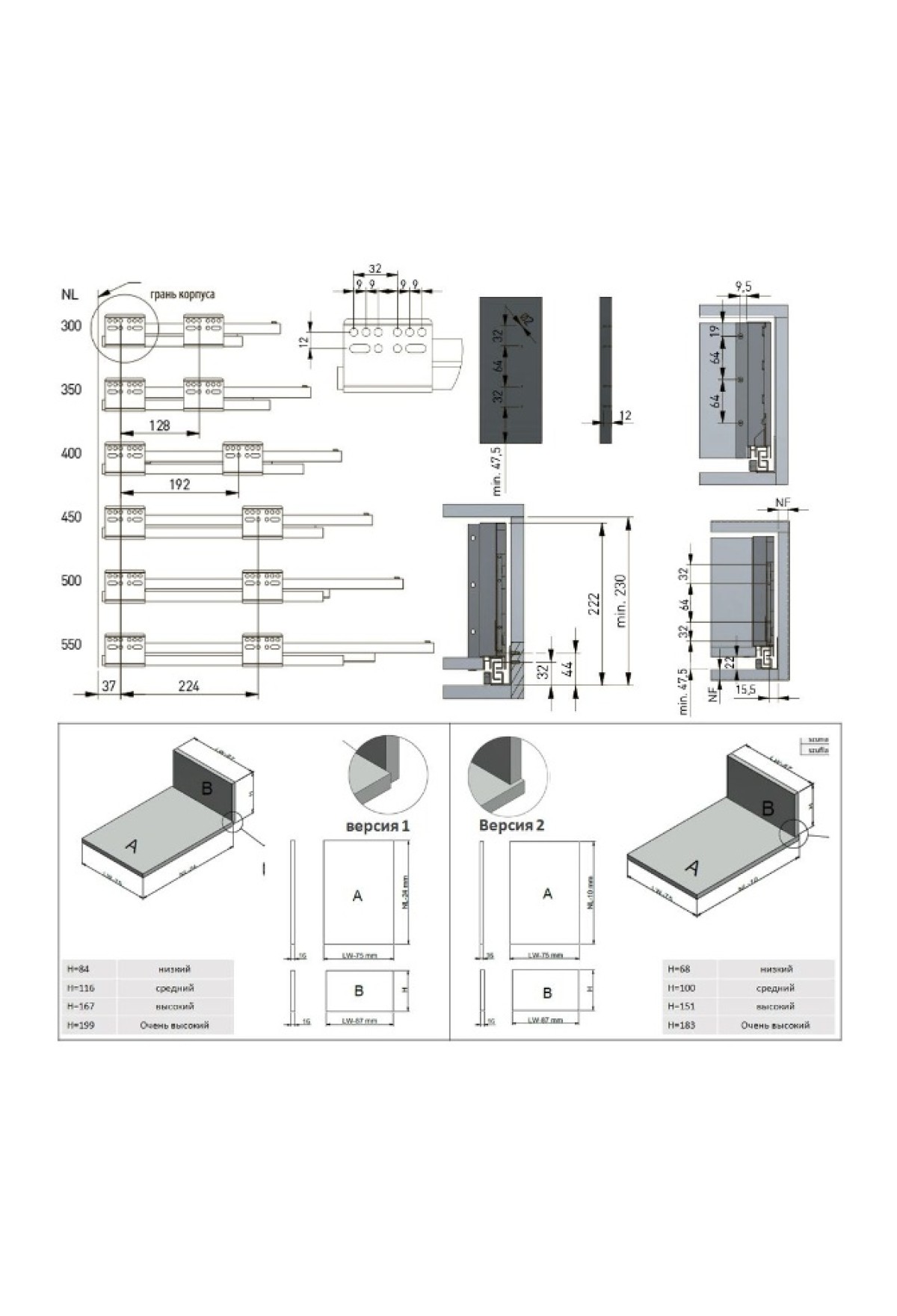 Высота боковин: 199мм (очень высокий ящик)