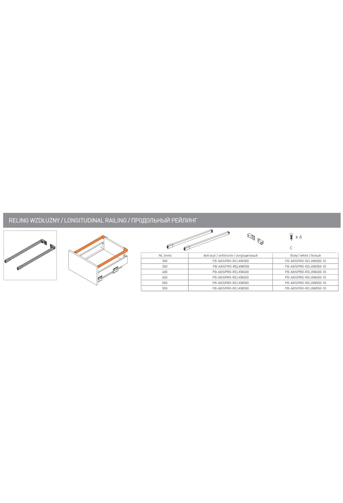 Рейлинг для AXIS PRO 550 мм, антрацит - прямоугольная продольная трубка, используемая для наращивания по высоте полезного пространства выдвижного ящика системы AXIS PRO.