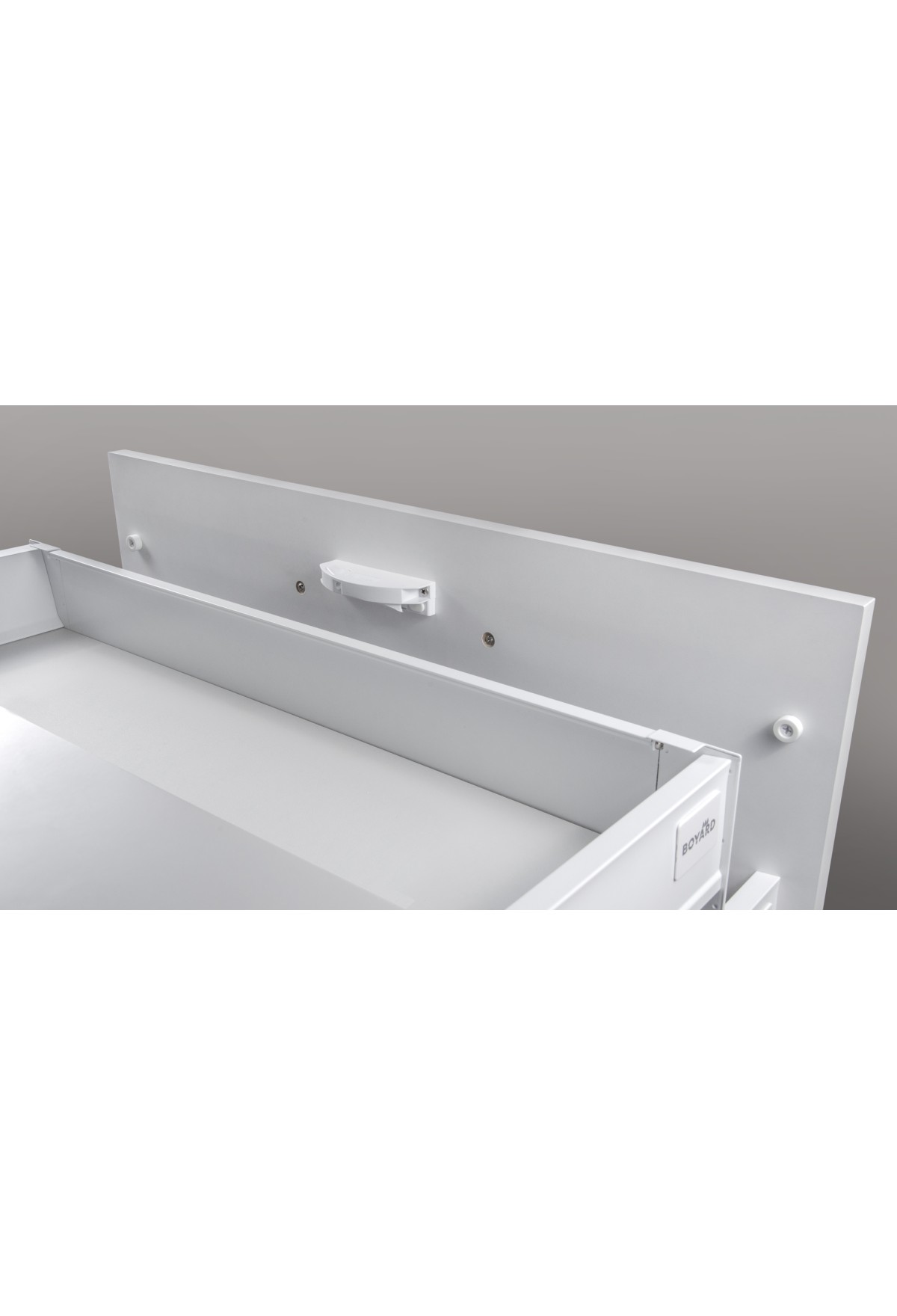Модель имеет продуманный скруглённый корпус со специальным механизмом, который обеспечит безопасное синхронное открывание внутреннего ящика и ящика с фасадом.